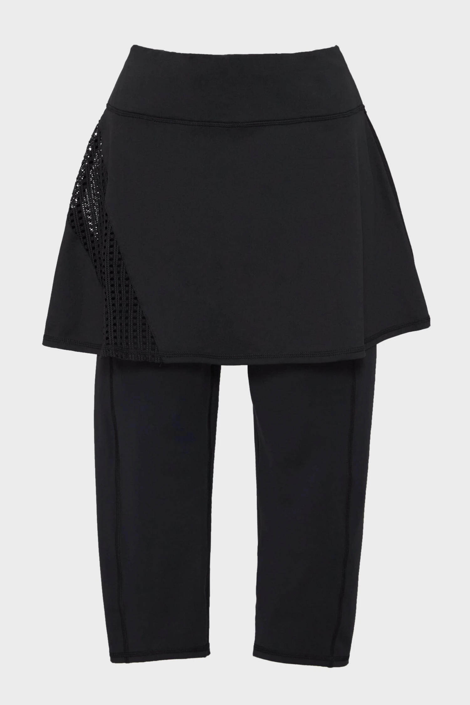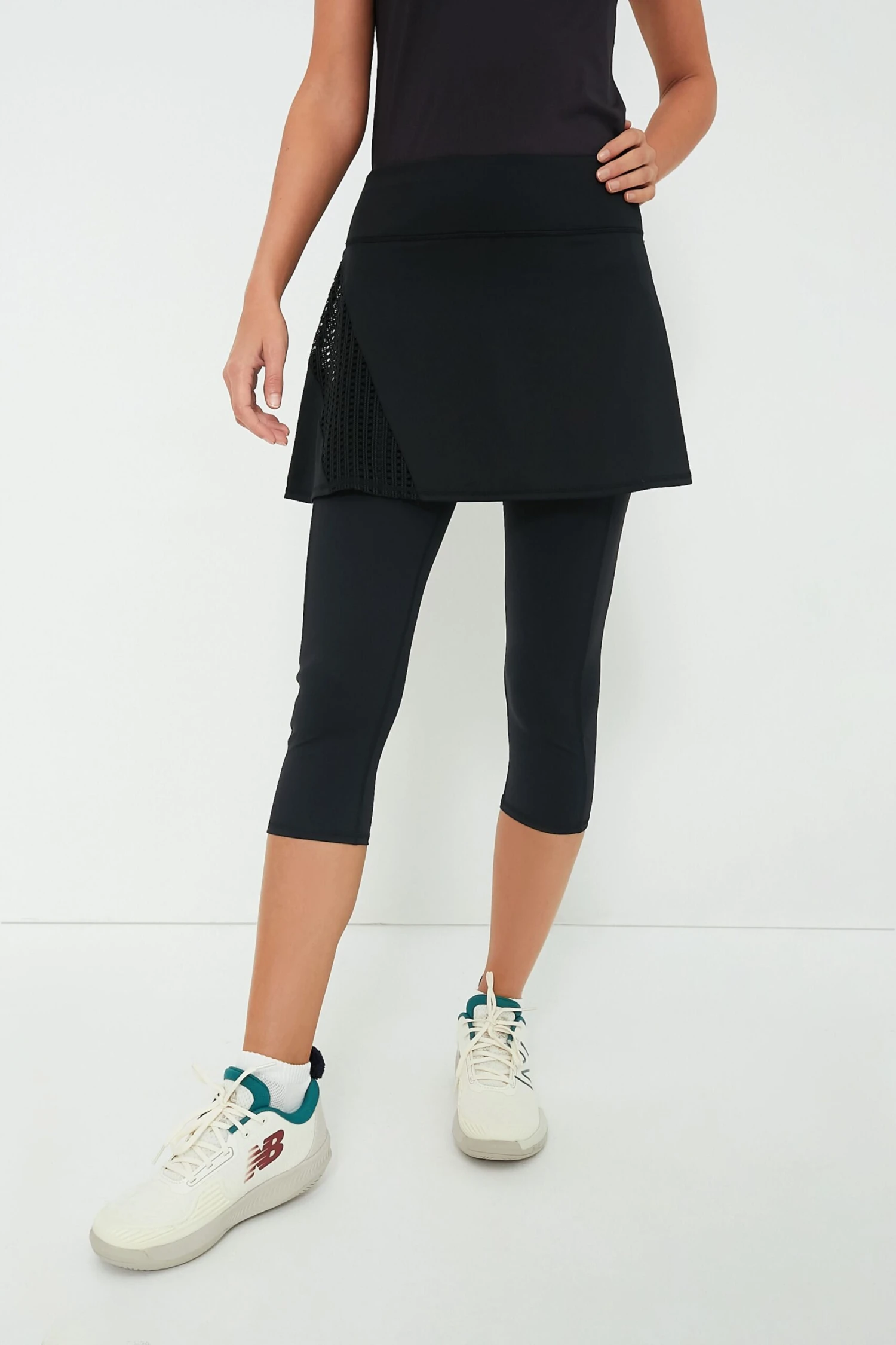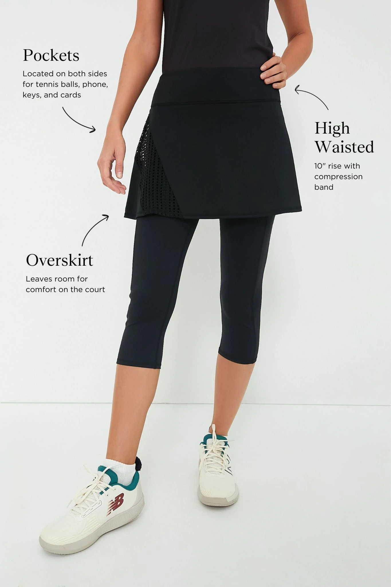 Perfect for power walking but plays just as well in the carpool line, the Black Jesse Skirted Capri adds a little extra coverage and a lot of extra sass to your standard athletic pants. Featuring pockets on both legs for keys, cards, and your phone, these are an essential for a girl on the go. Sweat wicking fabric and a compression high rise waistband are just a few call outs we love on this sporty chic style.