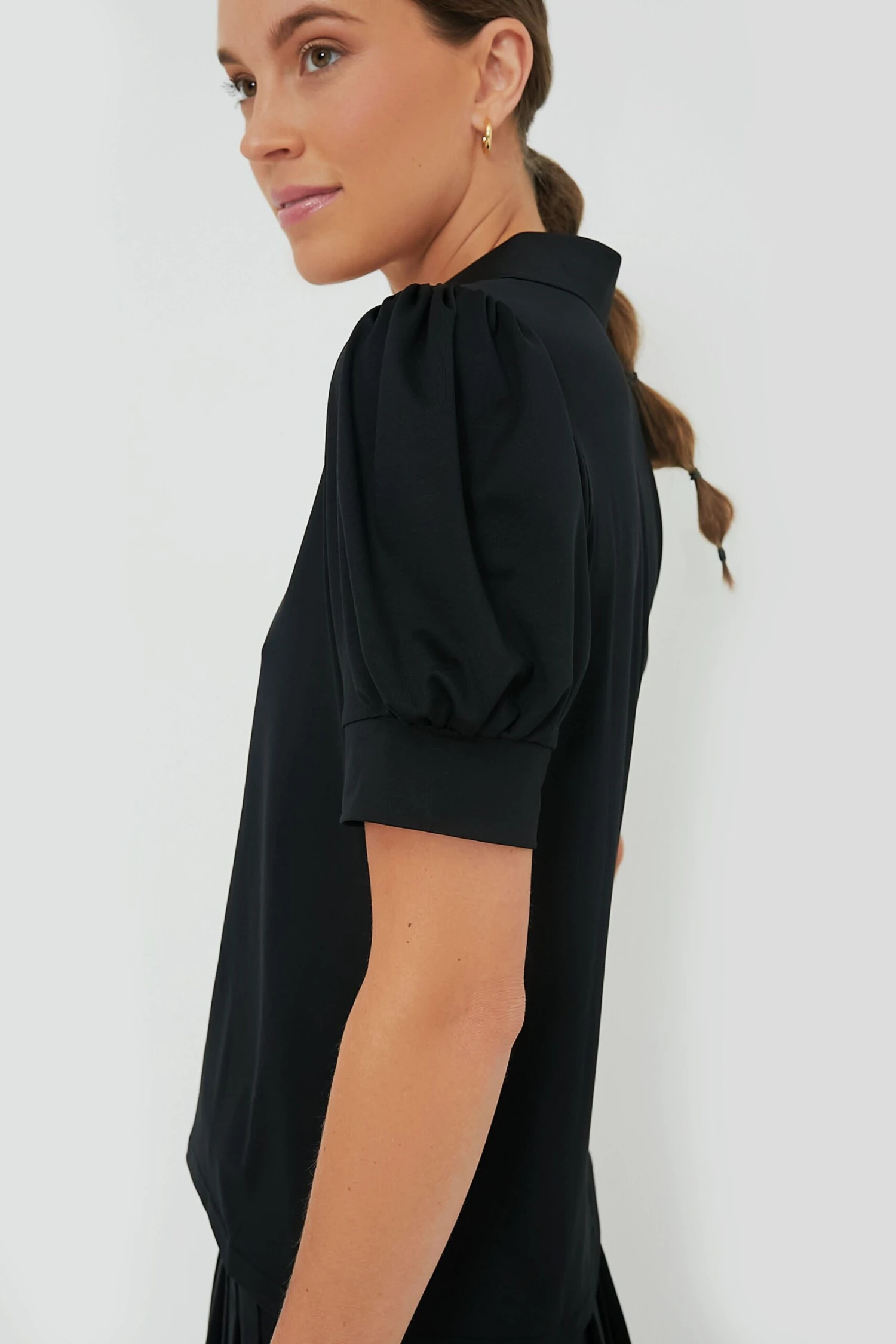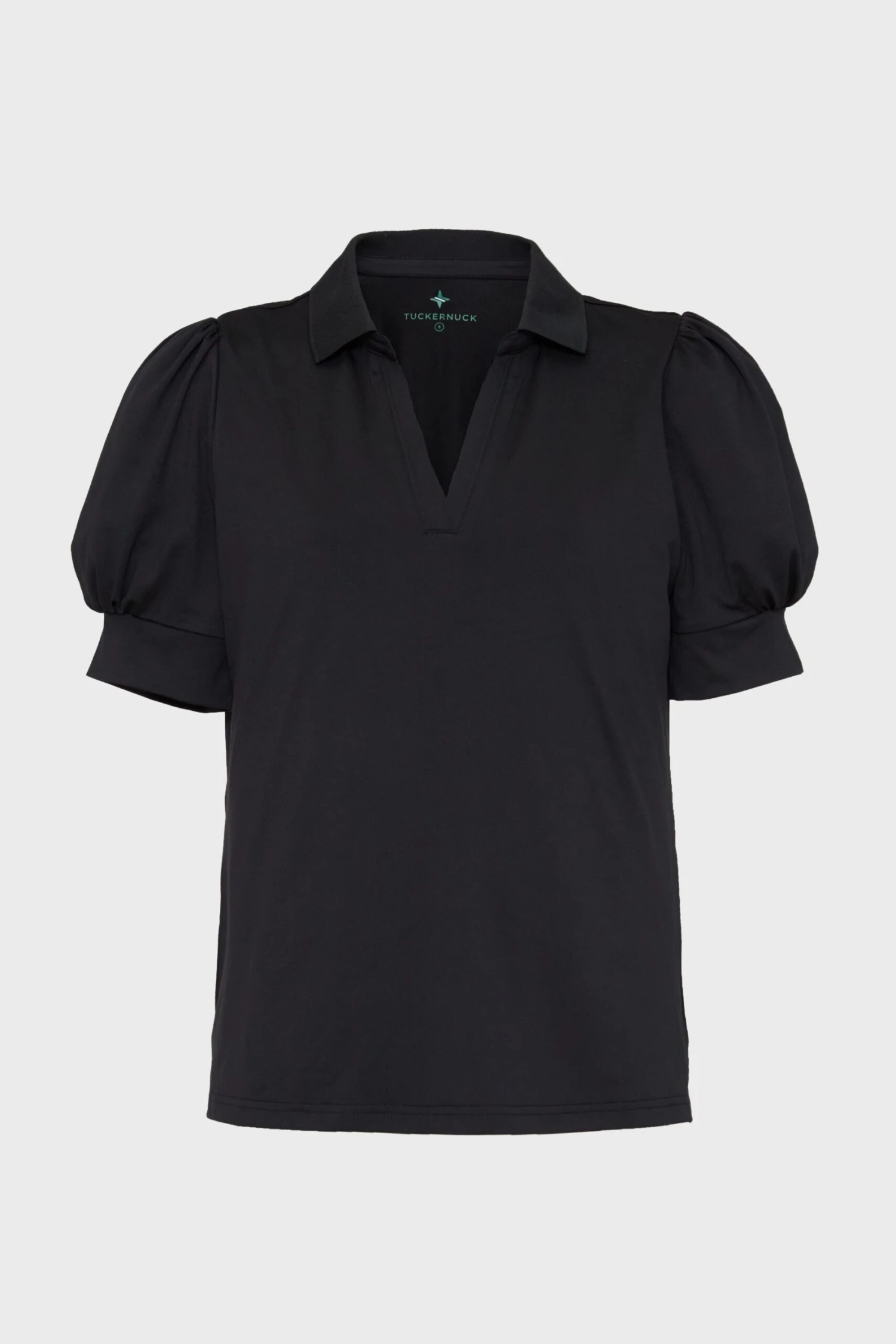 The perfectly feminine polo to sport on the course or courts, the Black Puff Sleeve Caroline Polo is for the preppy gal who loves a flirty twist. We designed this top with the perfect relaxed, yet flattering fit and a flat knit collar that not only aids in protecting your neck from the sun but also provides a clean look for the clubhouse. In a length that’s perfect for tucking in, we are pairing this with every and anything from performance skirts to leggings for a neat and polished look no matter the activity. You’ll be sure to stay cool as the game heats up with this quick dry, sweat wicking number.Â