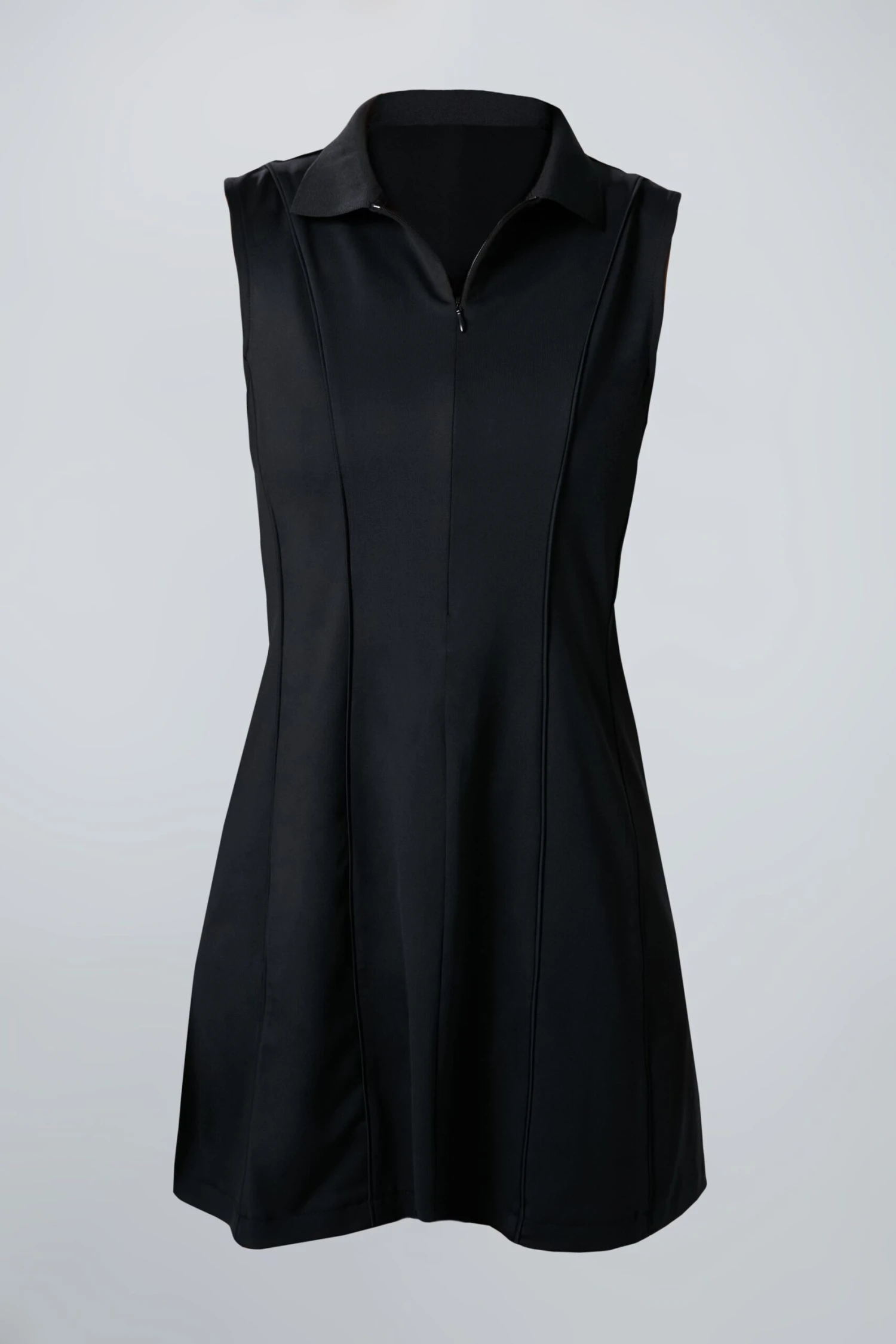 Take your beloved LBD, update it for the course, and you have the Black Roxana Half Zip Golf Dress. Designed with thoughtful functional details like the flat knit collar to provide sun protection on the back of your neck, not to mention adds a clean look for when you’re at the clubhouse. Multiple front seams enhance the fit and add an on-trend flare and the jersey knit fabric was created using superior stretch and quick-dry properties for comfort and movement when the game gets tough. Whether you’re up for some friendly competition on the links or grabbing a quick morning coffee before running errands, this performance piece will bring out your A game not matter the activity.