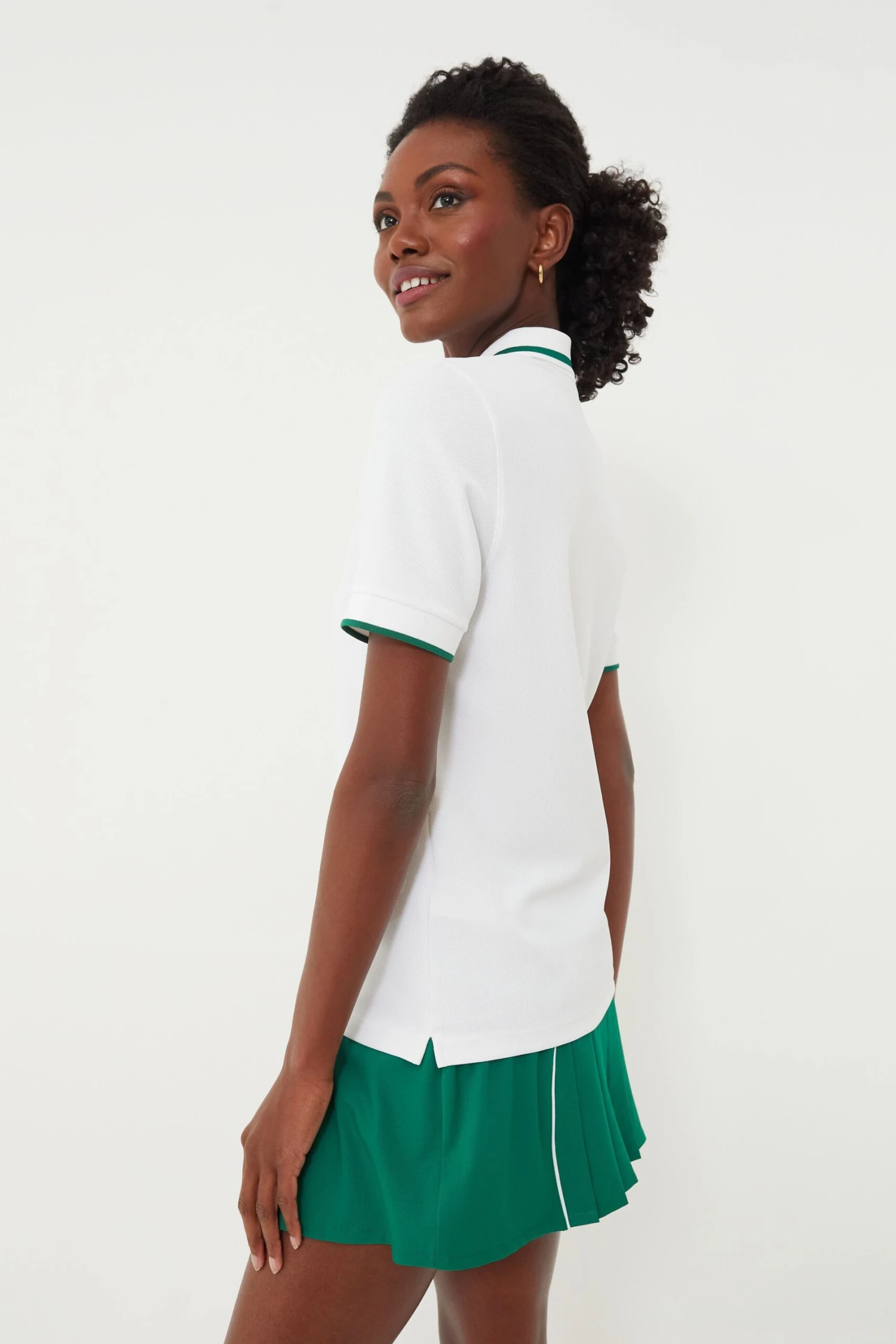 A redefined classic, the Blanc Performance Pique Polo is fresh and feminine. Sporting a spread collar, partial front button placket, and mother of pearl buttons, this top is a staple sure to live in our wardrobe for years to come! Pair with a pleated skirt, hat, and sneakers for a stylish, athletic look that wins on and off the court.