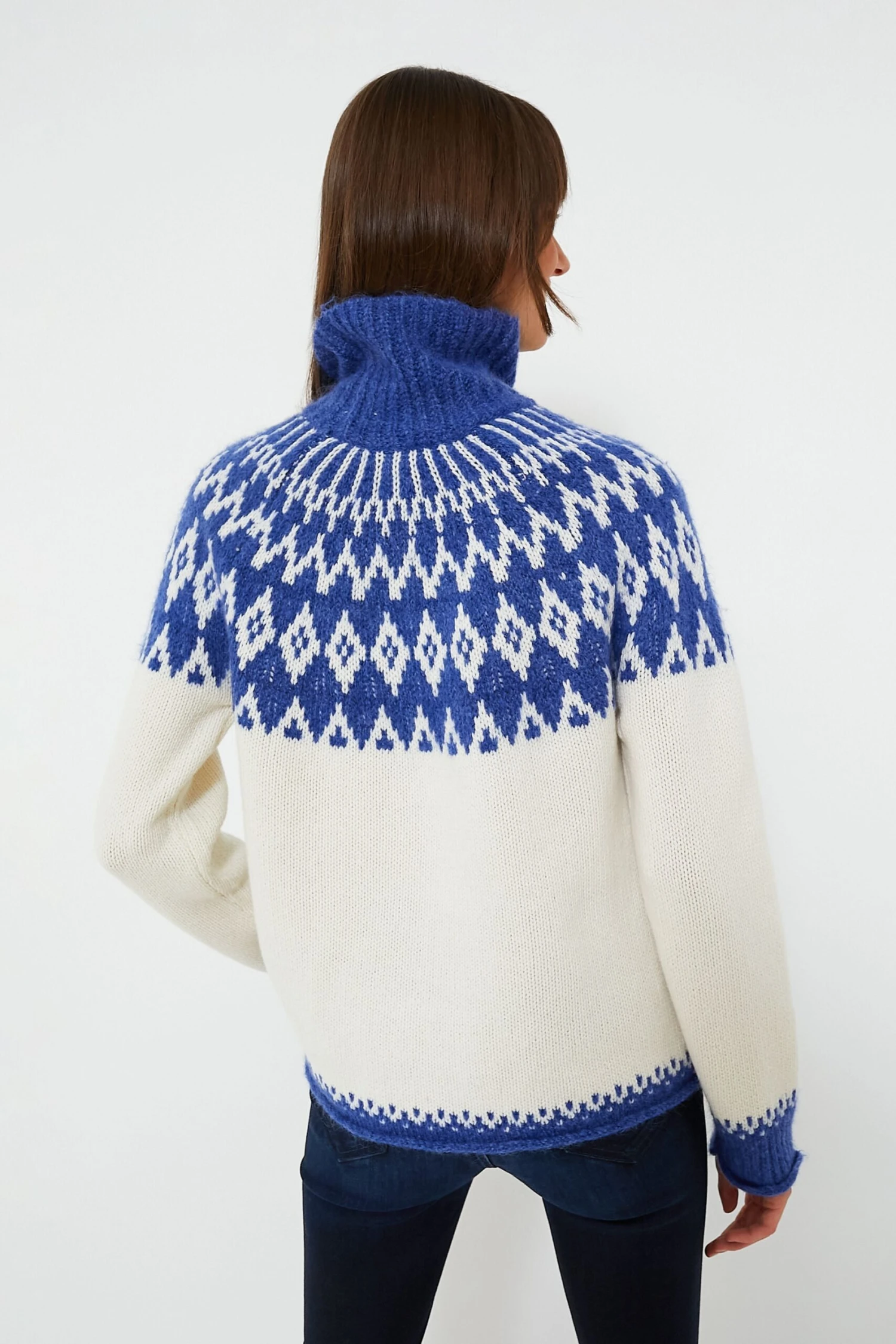 The quintessential winter-slash-holiday sweater – Blue Combo Bailey Turtleneck exudes ski getaway vibes. Inspired by traditional Fair Isle design, this one’s got a perfectly oversized fit and classic Nordic design. Knitted with warm, extra fine Merino Wool yarn and a touch of mohair for a slightly fuzzy texture, you’ll cherish wearing it for seasons to come. Pair with a midi skirt and tall boots to dress it up, or keep it classic with denim and gold hoops for everyday wear.