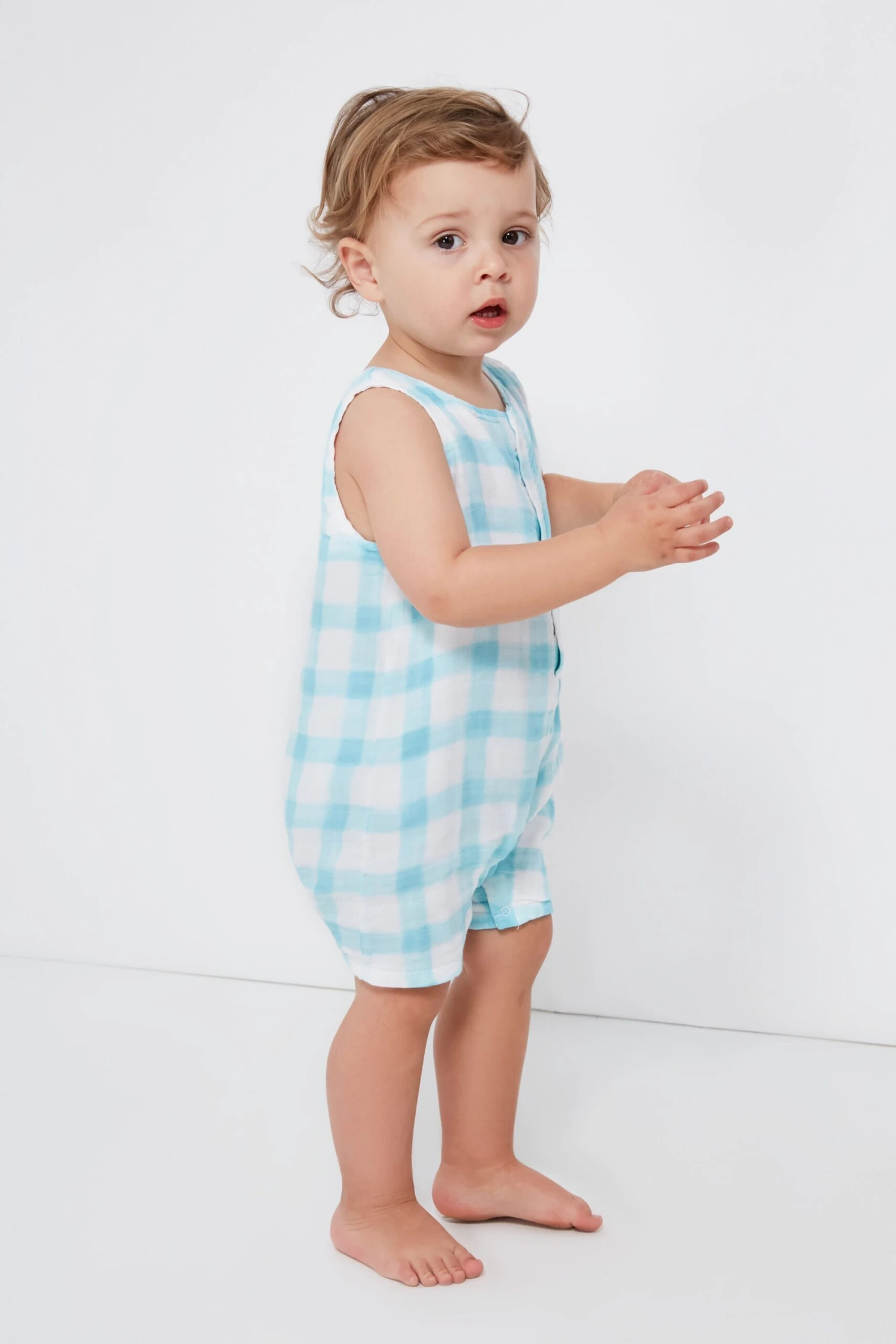 Isn’t the Blue Painted Gingham Shortie Romper just adorable? We thought so too. This onesie features a snap front placket and at the leg openings for easy changing. From playtime to nighttime, we’re sure your little one will love this little soft piece just as much as we do.