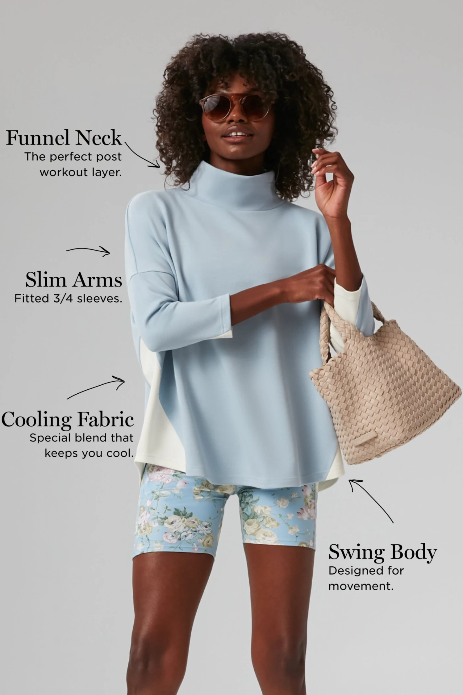 The perfect outfit topper to take you from a warm-up run to a coffee run, the Breezy Blue Ally Swing Sweatshirt was designed with mobility in mind. This best selling style features flattering and fitted sleeves, a swing body, and stand collar. This soft-to-touch sweatshirt pairs perfectly with leggings, shorts, and performance skirts for an all-activities piece.
