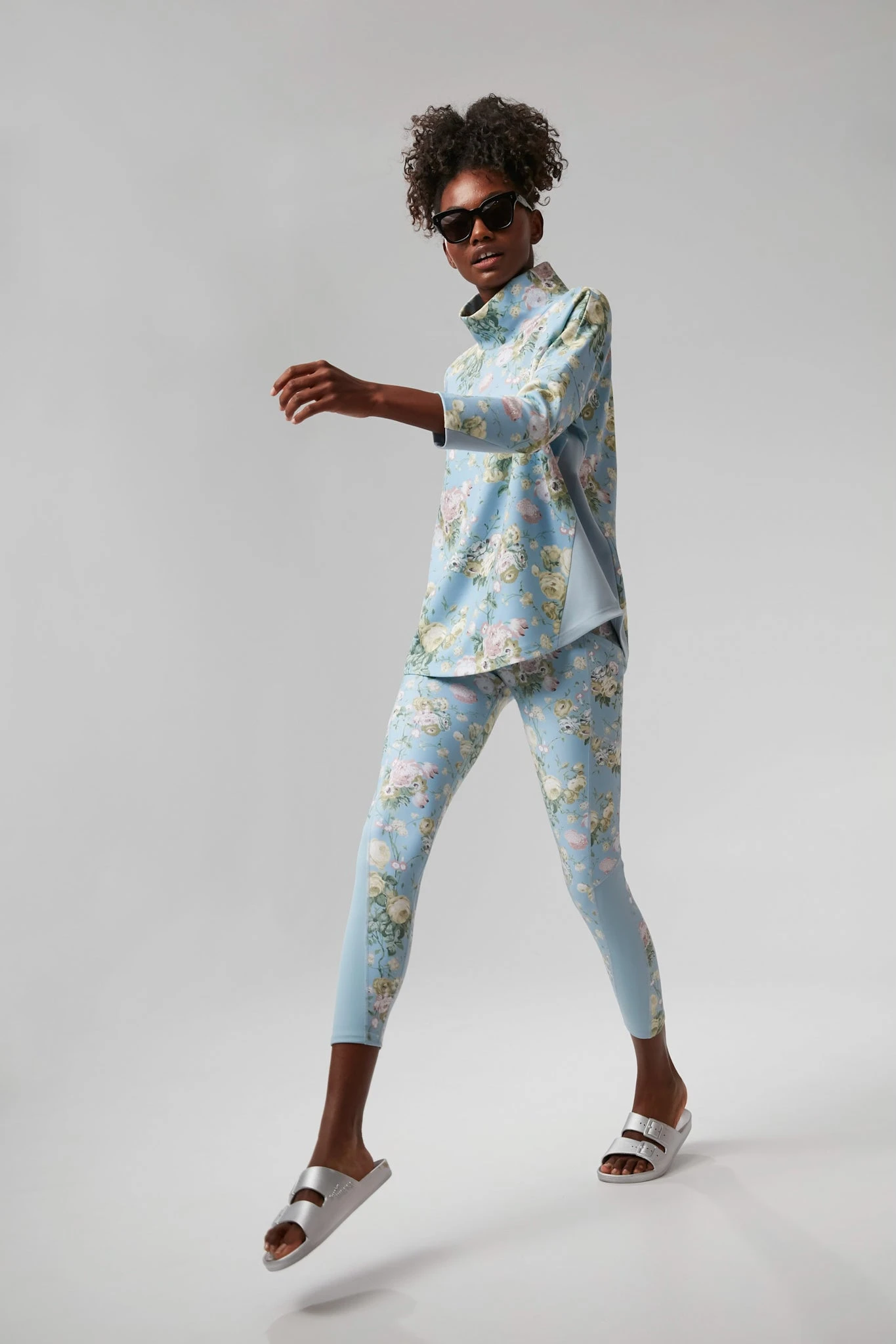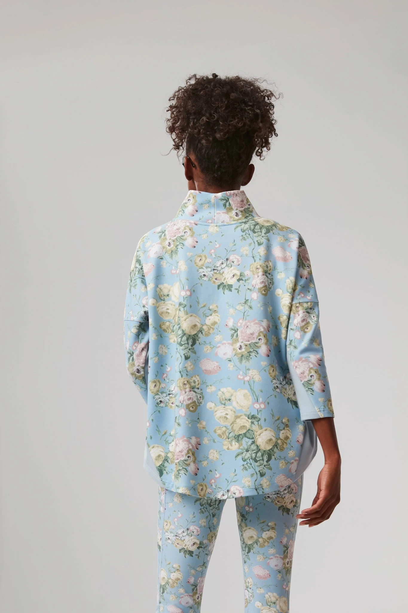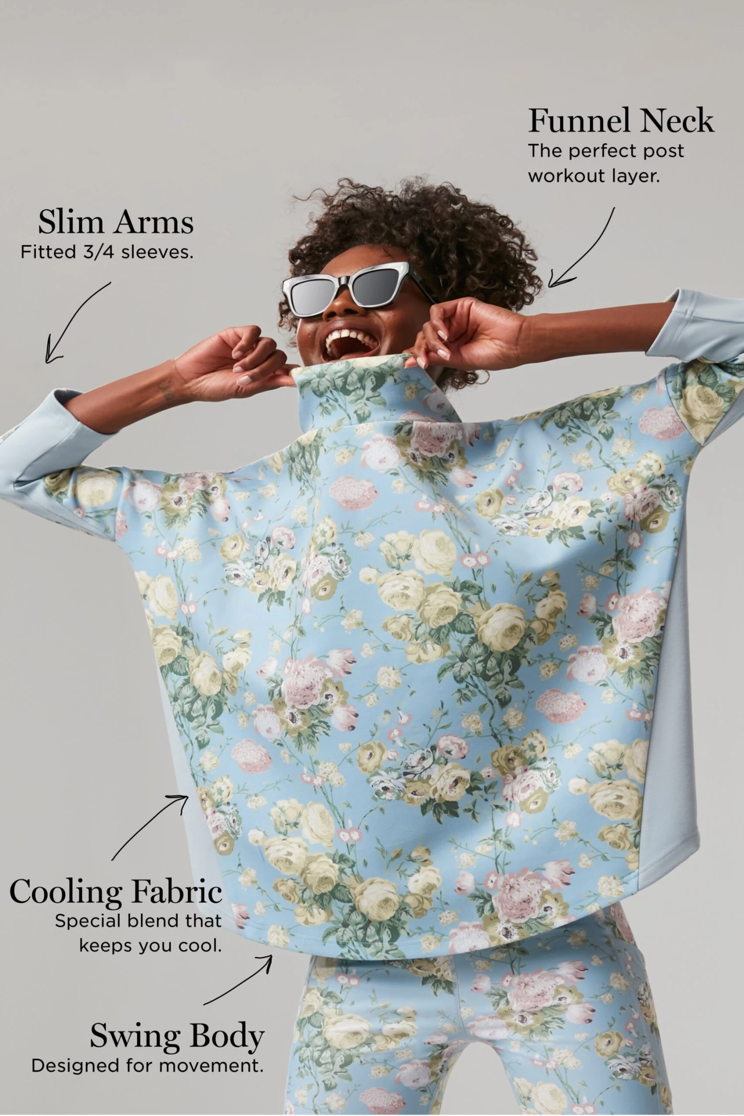 The perfect outfit topper to take you from a warm-up run to a coffee run, the Breezy Blue Chintz Ally Swing Sweatshirt was designed with mobility in mind. This best selling style features flattering and fitted sleeves, a swing body, and stand collar. This soft-to-touch sweatshirt pairs perfectly with leggings, shorts, and performance skirts for an all-activities piece.