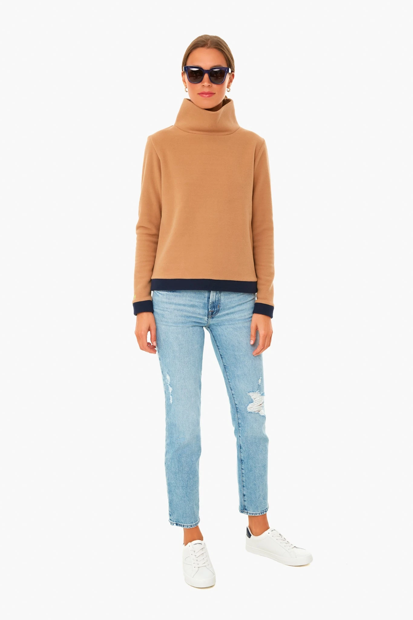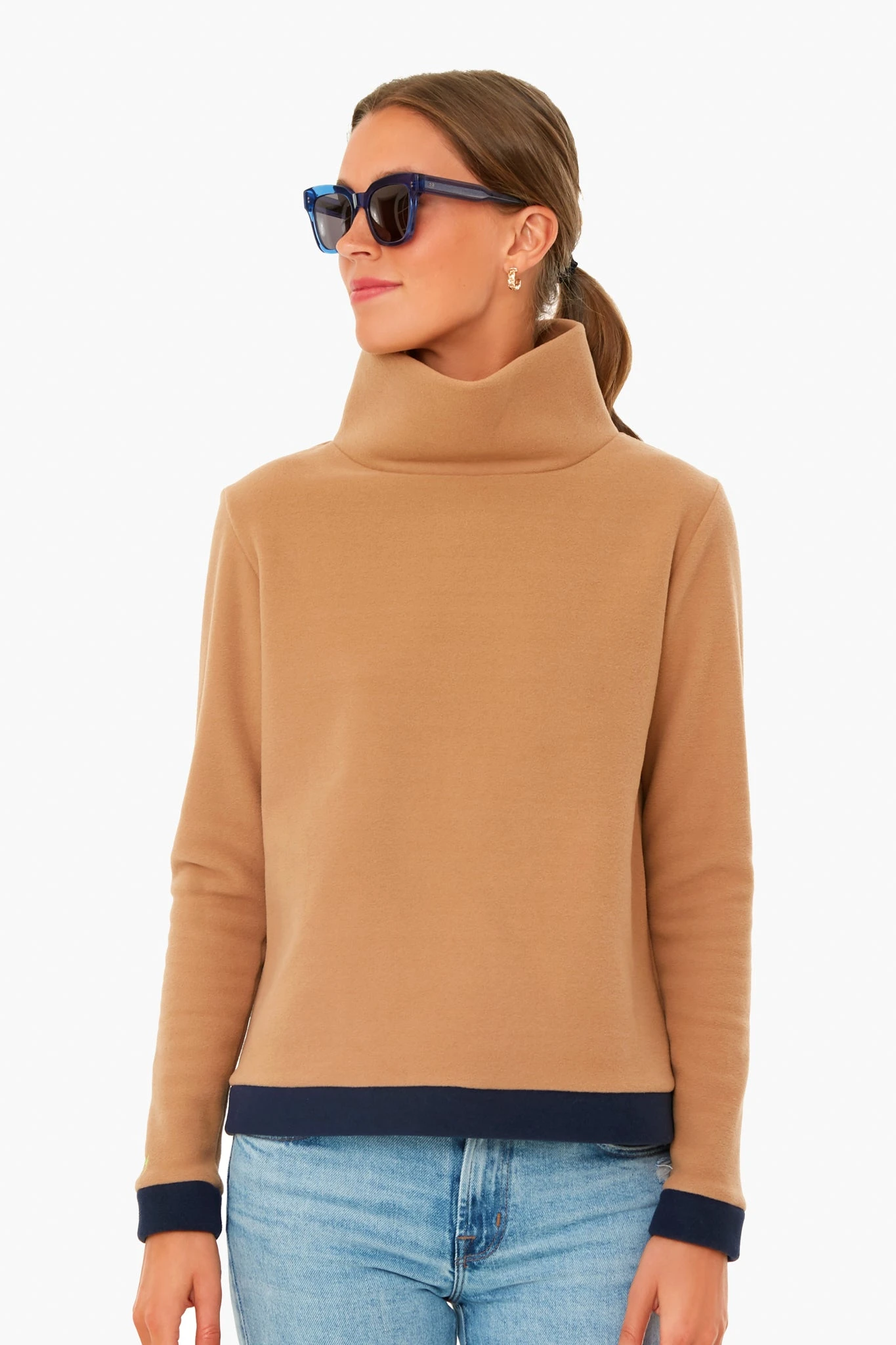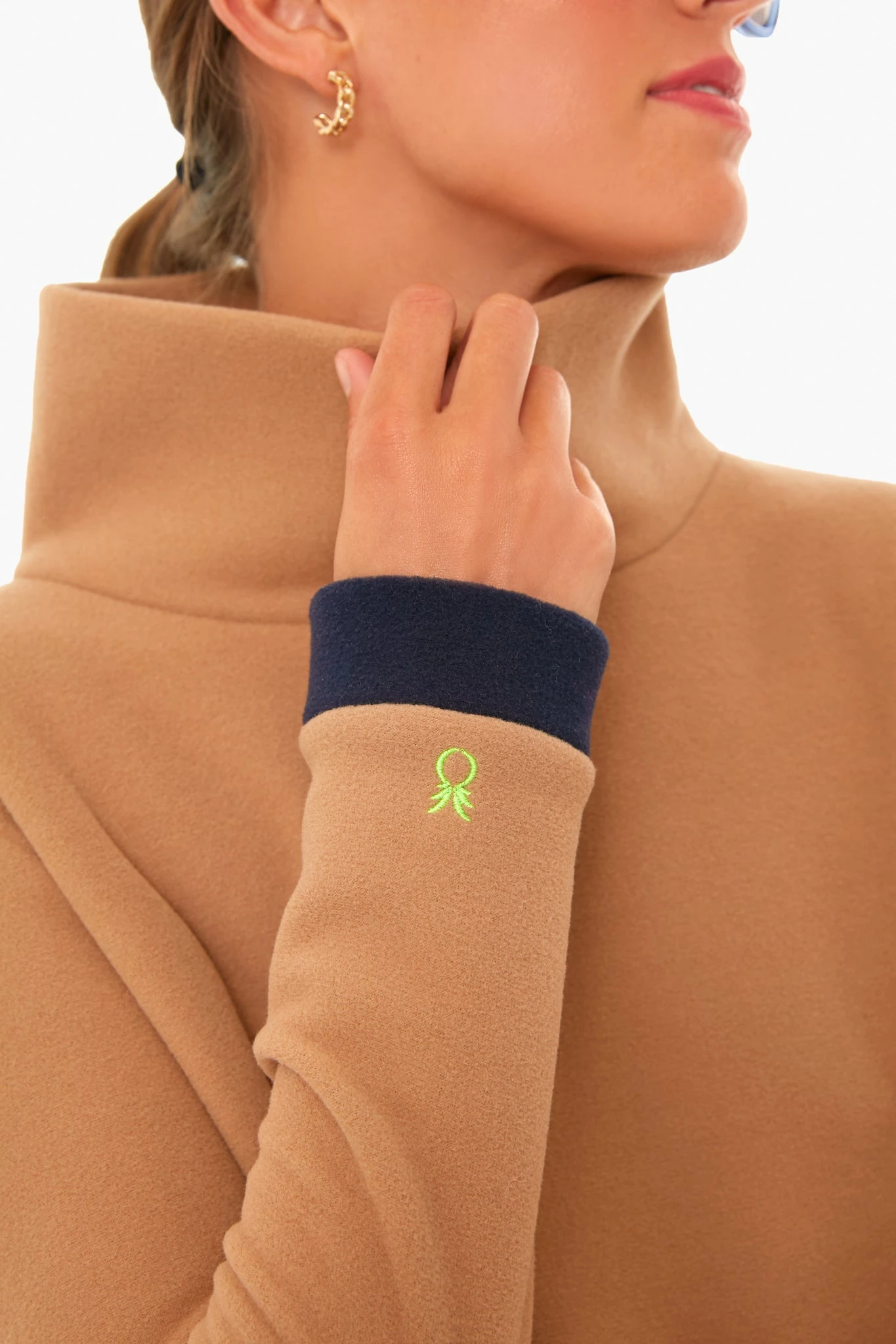 The Camel and Navy Colorblock Park Slope is a Tuckernuck exclusive style featuring classic hues that pair well with just about anything. Hitting just below the waist, this funnel neck silhouette has a contrast banded detail around the hem, and an extra-soft and cozy fit. This style is made from a non-iron vello fleece and is perfect for all activities from post-workout coffee runs to bonfires to relaxing at home!