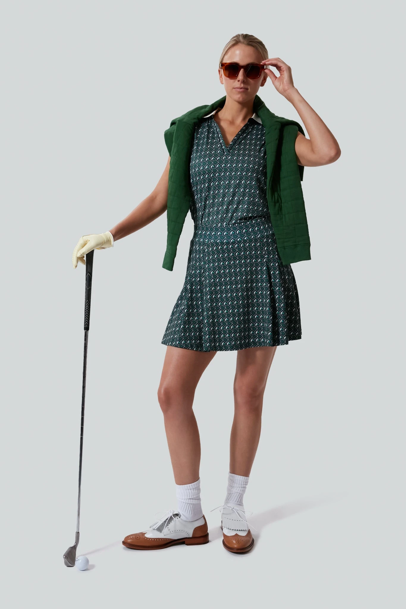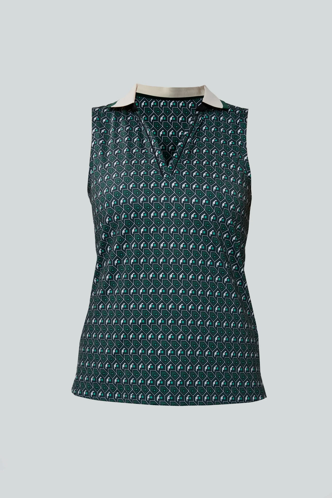 The Carraway Fairway Sleeveless Caroline Polo is a classic look with modern tailoring. Featuring an open collar with green trim and a high-low hem for tucking with ease, this piece keeps it cool even when the match gets hot. We designed this with tennis and golf in mind, but it works well for a power walk or pickleball match too.