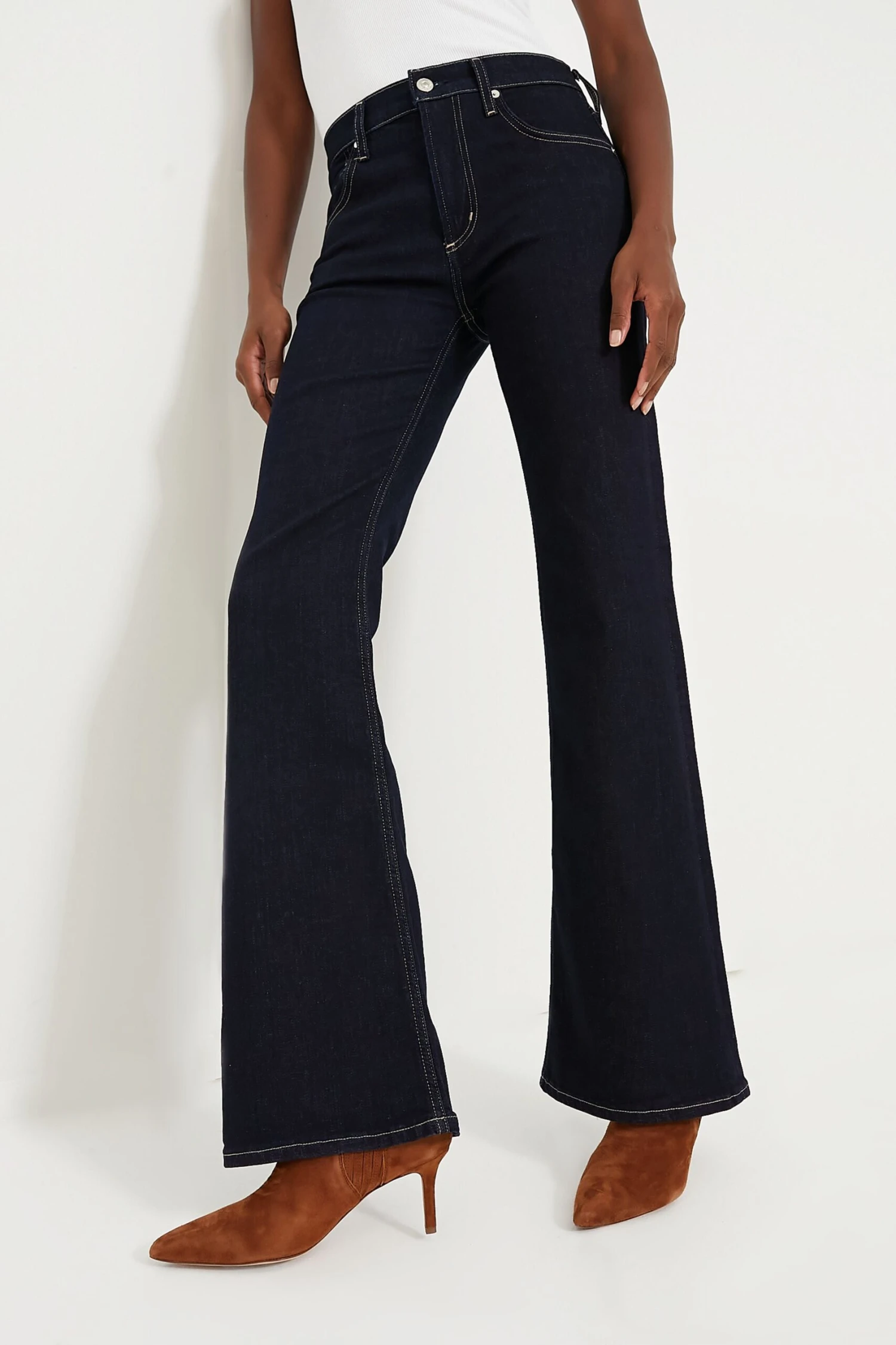 Meet your new go-to jeans! Solace Isola Flare features a flattering mid rise with a slim fit through the leg and a subtle bootcut flare at the hem. The leg lengthening flare shape exudes sophistication and the soft stretch fabric provides comfort all day. This transitional style will quickly be in rotation in your closet — pair with blouses, sweaters, and tees because the possibilities are endless!