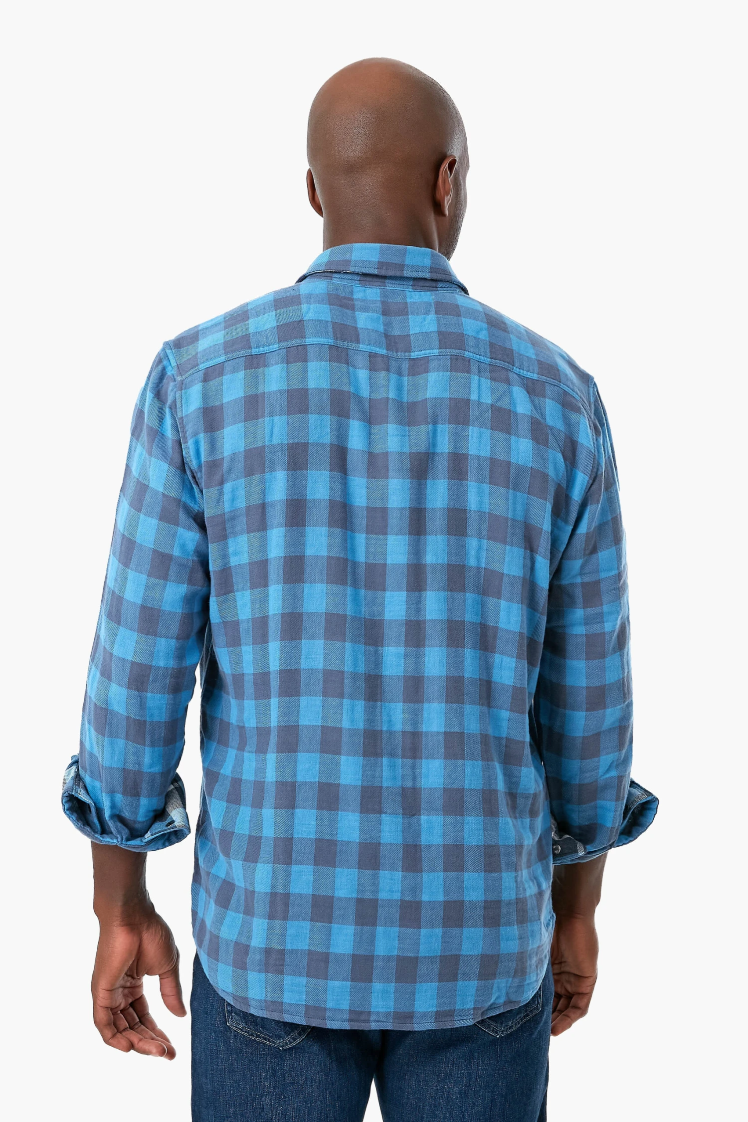 The Cobalt Nights Buffalo Reversible Shirt is two classic button downs in one, so we just know you are going to love this style. With snaps at the cuffs to customize the sleeve length, a patch pocket at the chest, and two unique blue plaid patterns to choose from, this relaxed silhouette is a must-have. With an airy, homespun weave that gives this shirt a slight bit of comfy texture, this wears well on its own for the fall season or under a jacket as the weather cools.