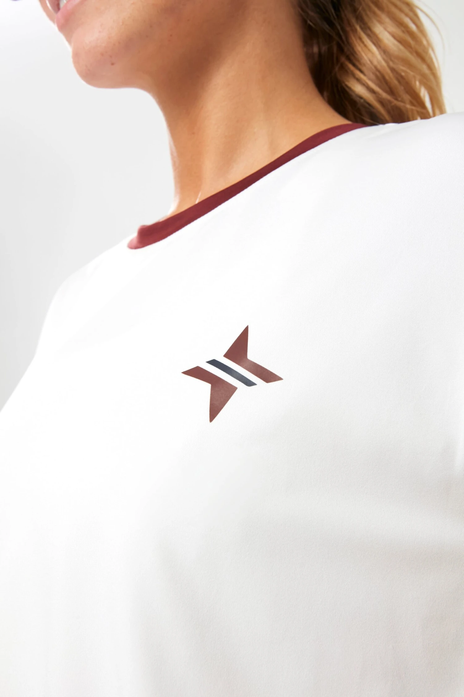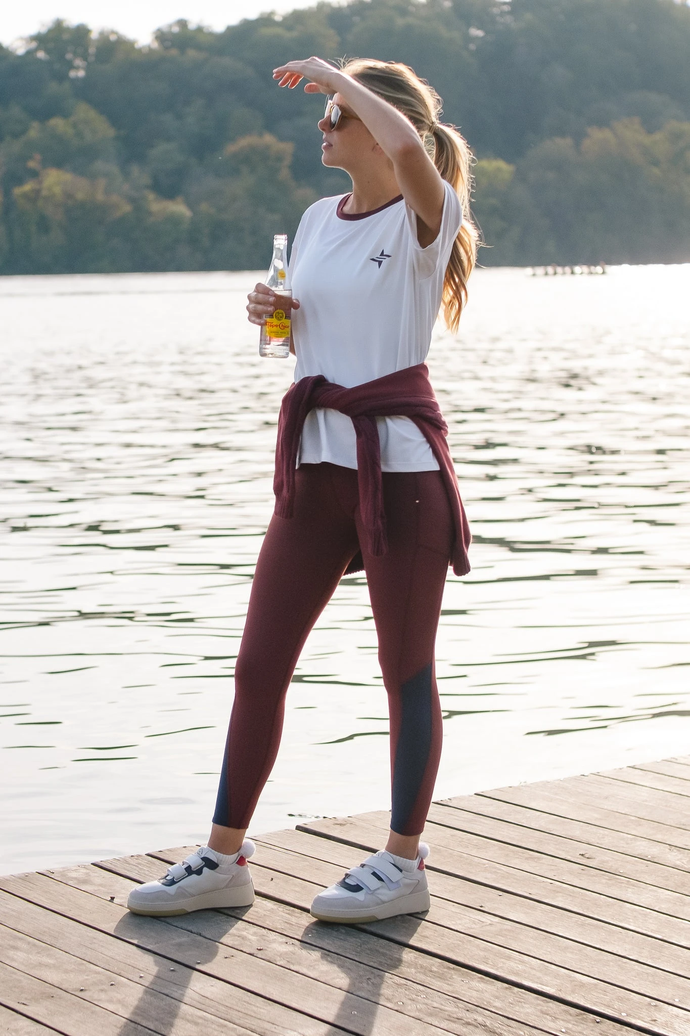 Perfecting (if we do say so ourselves) the slightly cropped, boxy but not baggy, sweat-wicking and quick dry performance tee, this will take you from a quick sweat sesh to the juice bar faster than you can say âextra kale please!” Bonus: it pairs so well with every type of bottom that itâs all you will need to pack for your vacation workoutâ¦..if you are into that kind of thing.