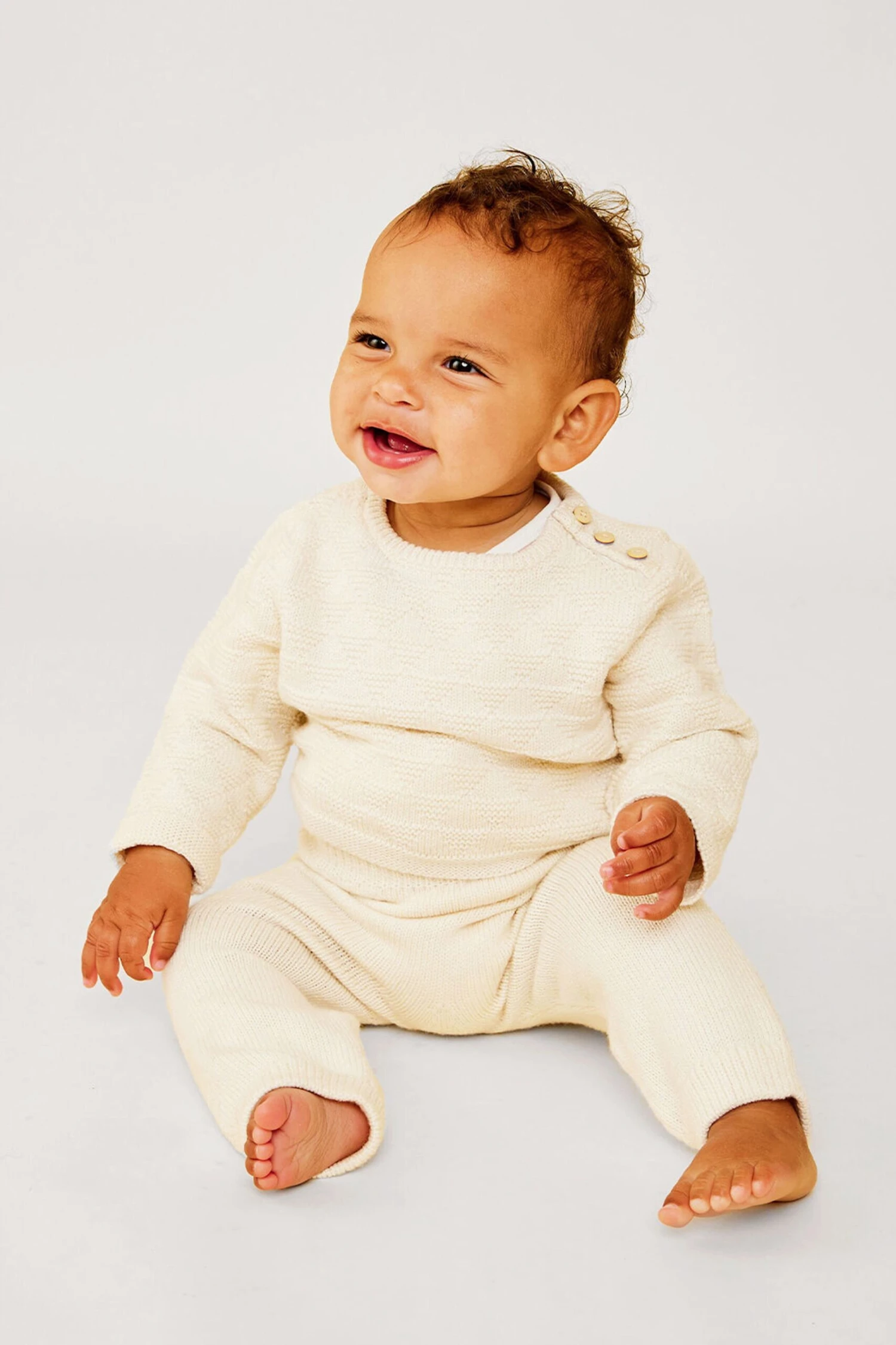 The Cream Rhodes Sweater is made to be worn, loved, and passed down through your family as an heirloom. Crafted from luxe merino wool cotton blend ensures to keep your baby extra comfortable in any temperature. Perfect for play dates, family gatherings, or simply for everyday comfort, style it with pants or a matching Baker Pant for a snug and stylish look.