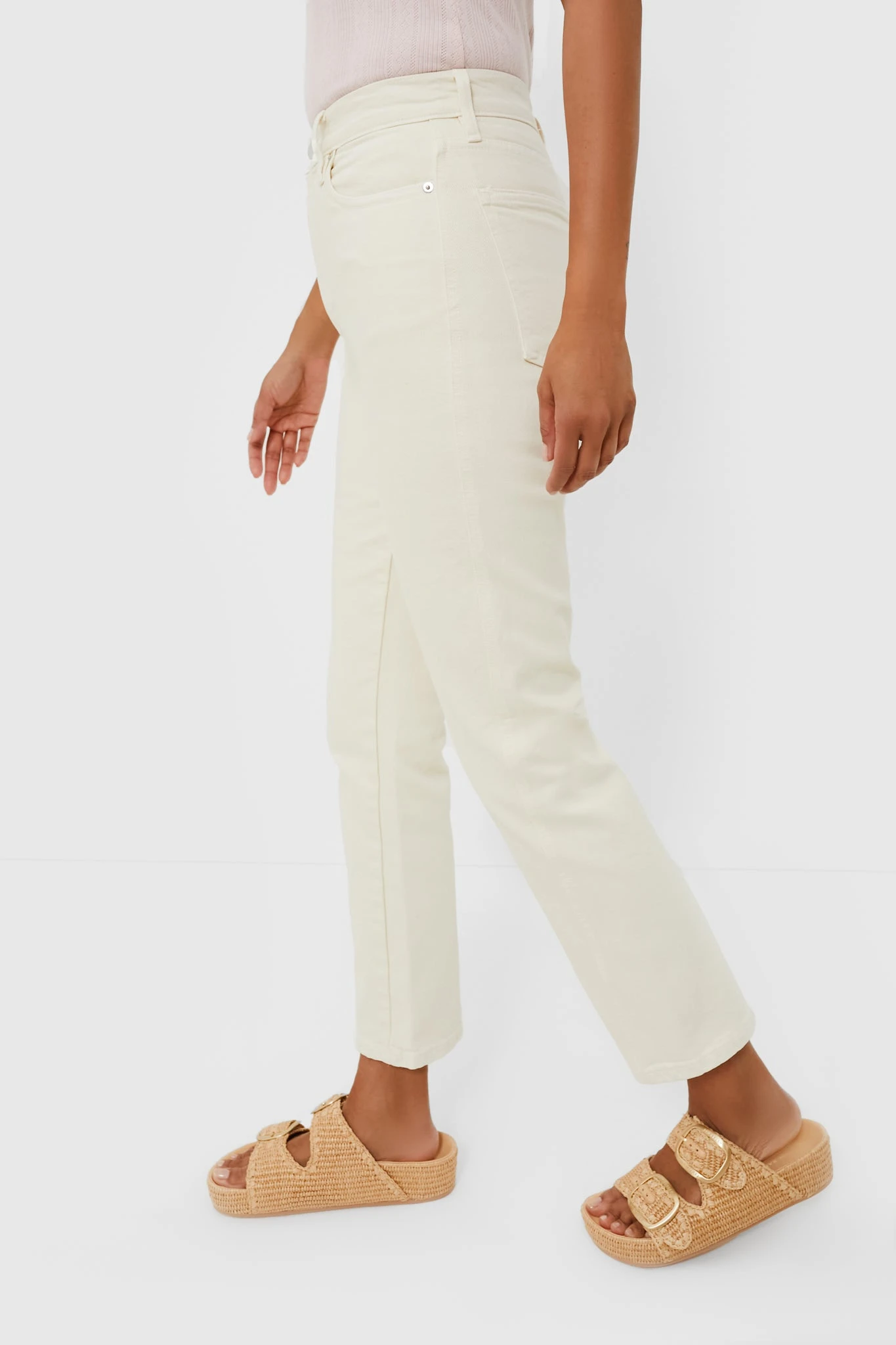 Get ready for a wardrobe revamp with the help of the Ecru Camilla Jean. A super high-waisted jean with a flattering forward side seam with a slight kick flare, this slim fit style is cut from a superior cotton blend with a touch of stretch ensures all day comfort. The creamy white hue provides versatility, dress them down with a basic tee and sandals for a coffee date, or dress them up for dinner and drinks with a silky blouse and wedges!