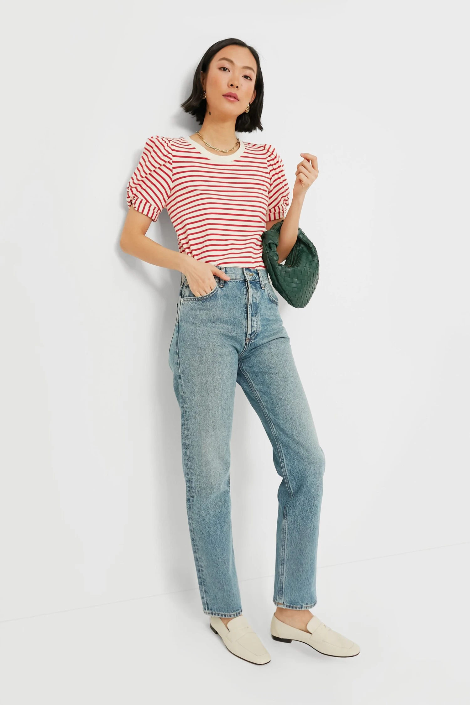 These classic Ecru Leather Soft Placket Loafers are a capsule closet must-have. With a classic penny loafer silhouette, a supple lamb leather, and a cushioned insole, these are an elevated look that ensure all-day comfort to get you through busy days. Dress down with denim and a blouse, or dress up with trousers and a blazer- these are perfect for everything from work meetings to coffee dates.Â