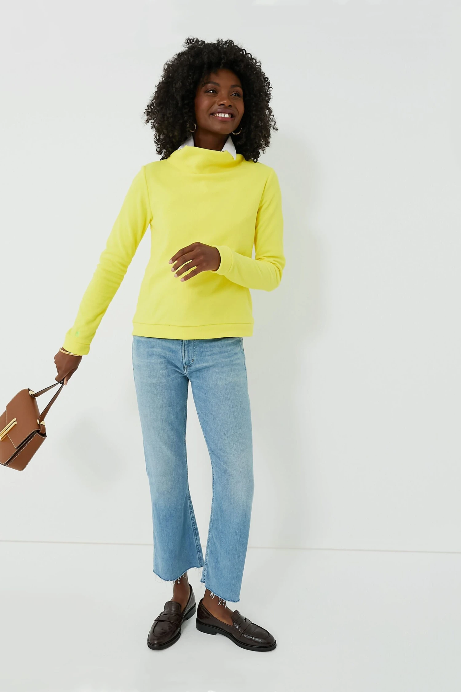 Made for ultimate comfort, the Exclusive Golden Kiwi Park Slope hits just below the waist and features a funnel neck, a banded hem, and a cozy fit. This style is made from a super-cozy terry fabric and is just the thing to keep you warm during outdoor adventures and while relaxing at home. We love to wear this perfect piece with flared denim, sleek leggings, soft joggers, you name it! Add a coat over top for extra warm or wear it on its own for a functional look.