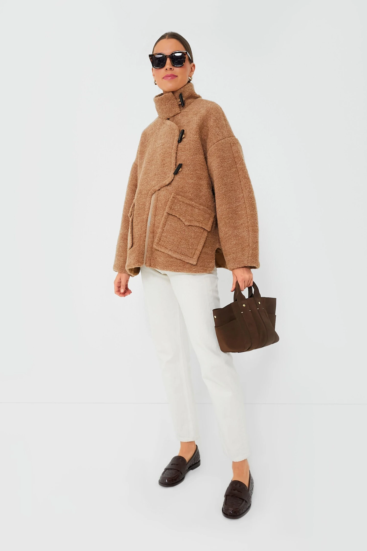 - Front zip with toggle closure