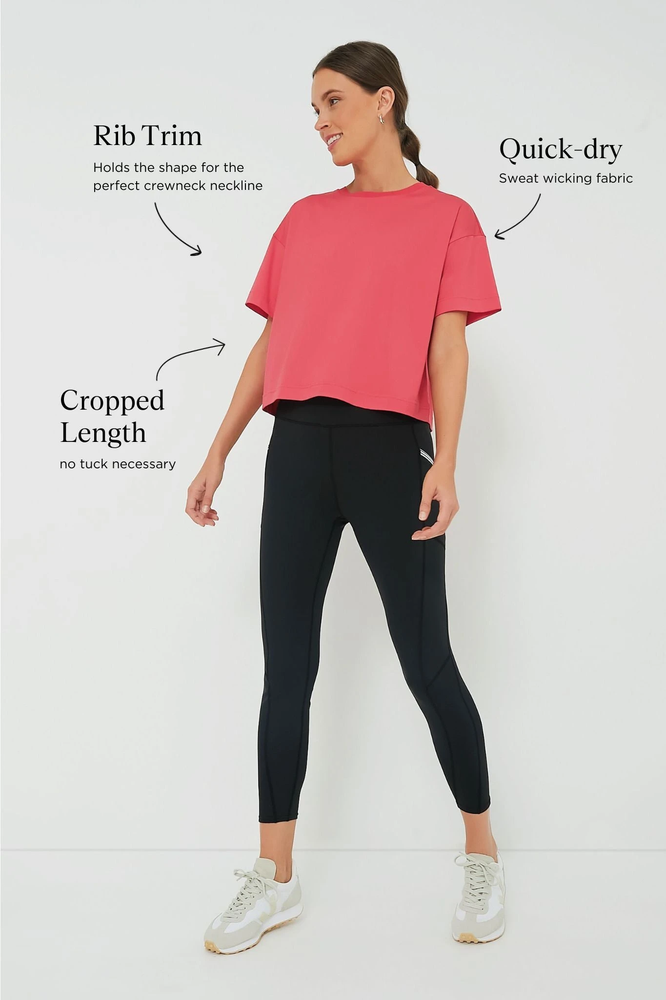 The fan favorite Boyfriend Performance Tee is updated with a (literally) cool cropped length that is lightweight and quick to dry, along with a rib trim on the neck to help hold its shape. A fun take on the classic athletic top, this roomy piece plays nicely from running to hiking to yoga to napping. Bonus: it pairs so well with every type of high rise bottom that it’s all you will need to pack for your vacation workout…..if you are into that kind of thing.           Â