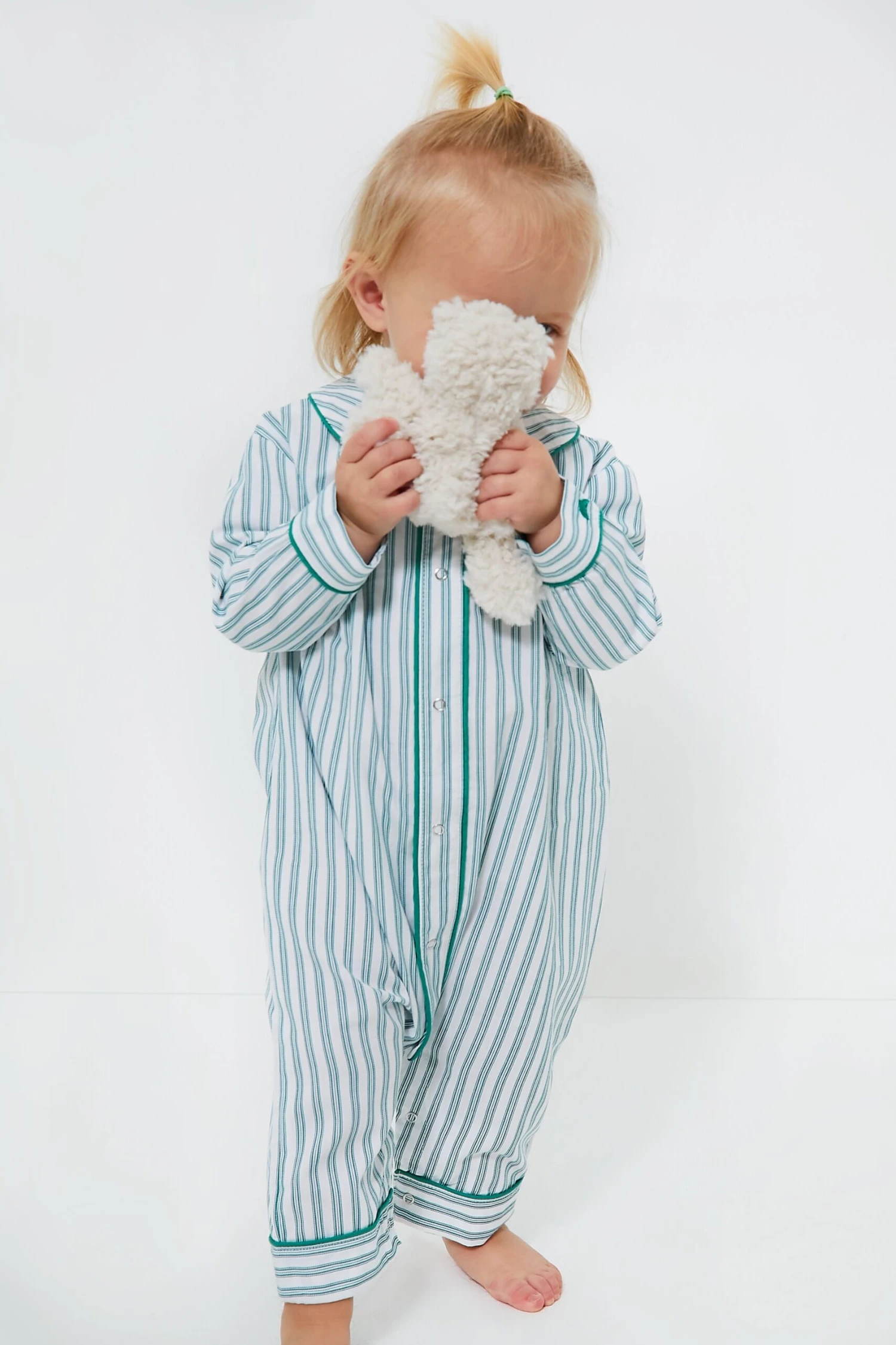 The Infant Emerald Ticking Cambridge Romper is made from the finest quality cotton with a classic print your little one is sure to love. Yarn-dyed to prevent fading and brushed for added softness, these get cozier with every wash. Snuggle up in these for naptime or a bedtime story, and enjoy some comfy quality time!