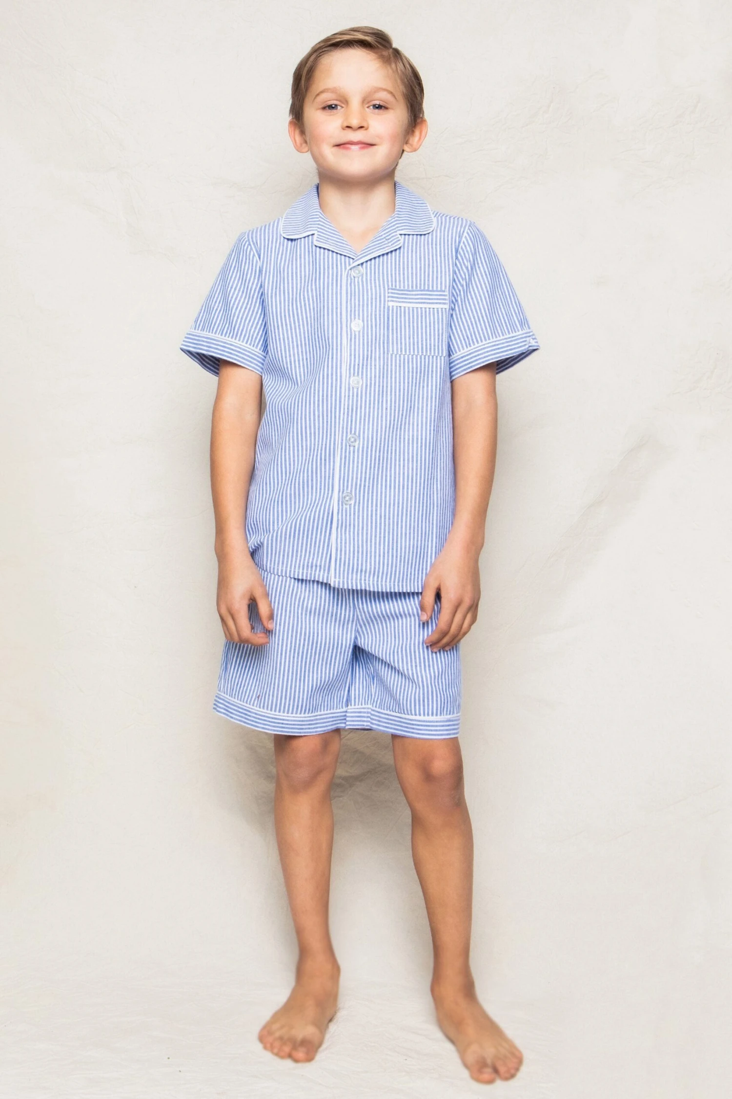 The Kid’s French Blue Seersucker Short Set is the most darling sleepwear for your kiddo. Accented with contrast piping and finished with pearl buttons, this set is made from the finest quality cotton and the fabric is brushed for added softness, making this feel absolutely luxurious, getting cozier after each wash. Tuck your little one in with love and send them off to dreamland with these PJs!