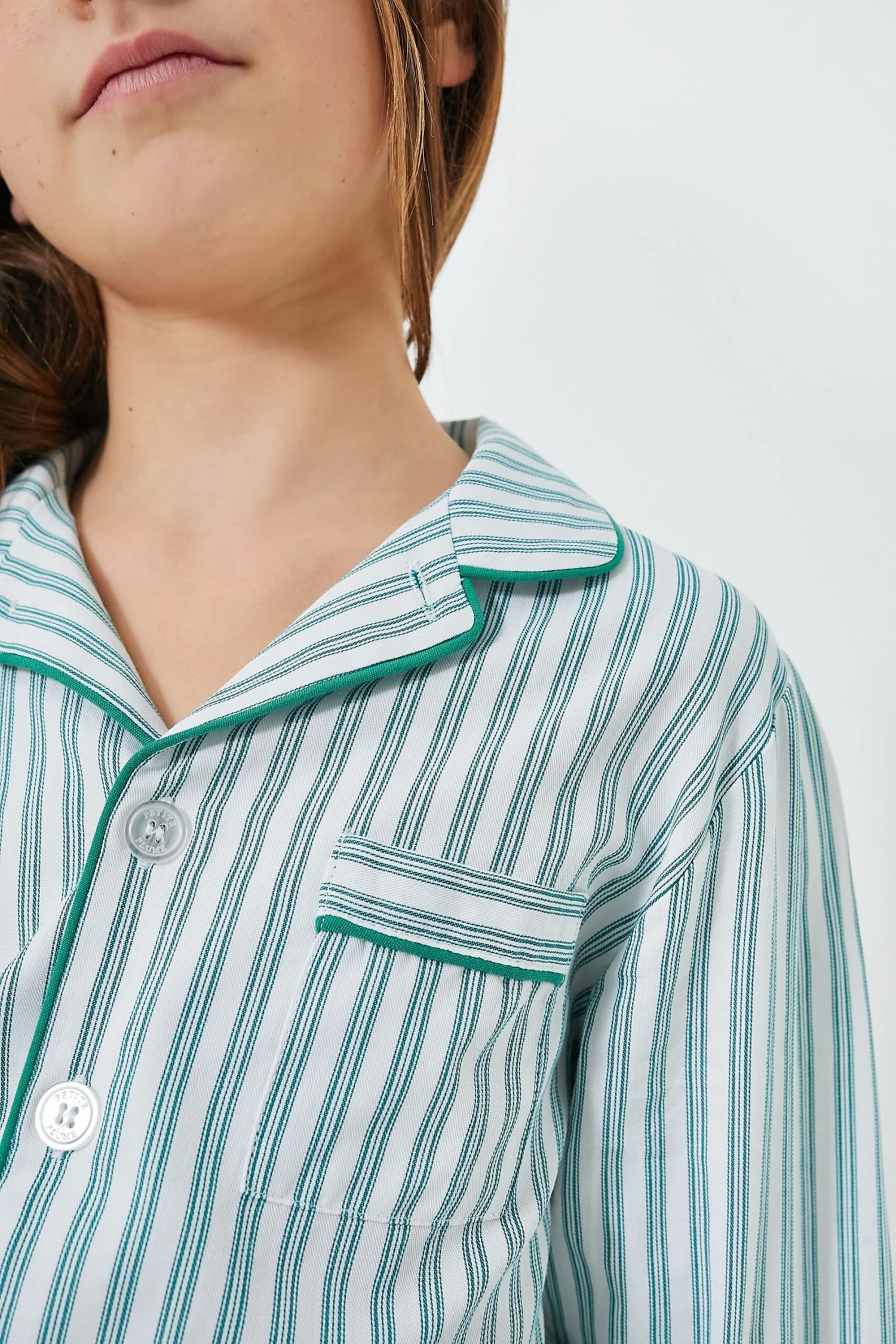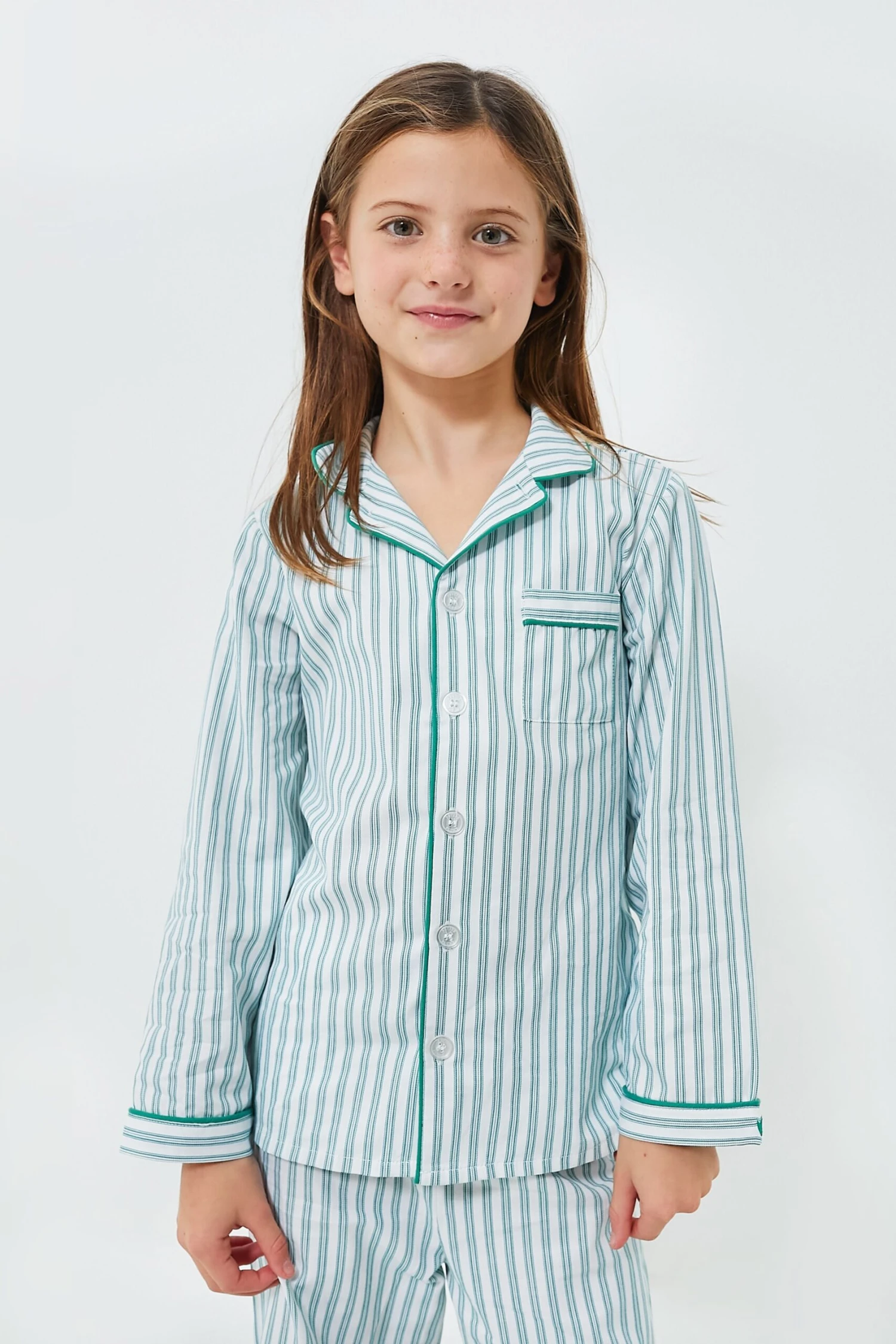 The Kid’s Emerald Ticking Pajama Set is made from the finest quality cotton with a classic print your little one is sure to love. Yarn-dyed to prevent fading and brushed for added softness, these get cozier with every wash. Snuggle up in these for naptime or a bedtime story, and enjoy some comfy quality time!