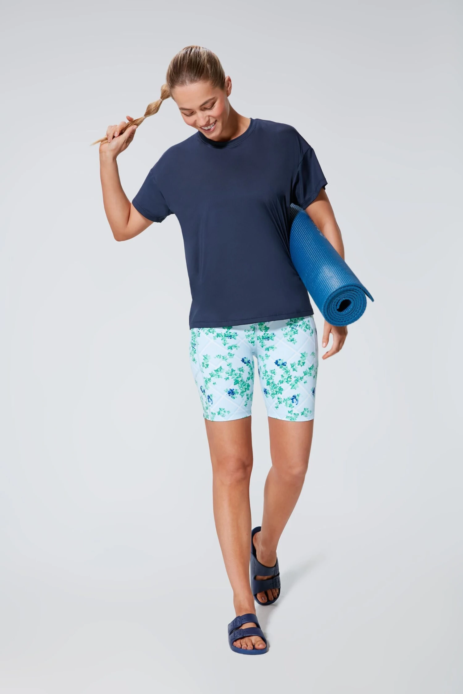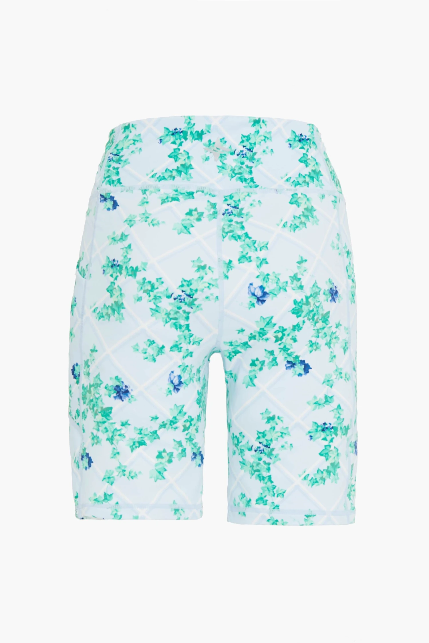 From beachside bike rides to serving on the courts, the Light Blue English Ivy 7 Inch Ava Bike Short is the most versatile piece. These quick dry, 4-way stretch shorts are updated in a slightly longer length and designed with side pockets for your phone, keys, and cards, as well as flat locked seams to make them as functional as they are fun. Pair with a coordinating navy tee or throw under your tennis and golf dresses for a cheeky pop of color that is sure to bring a smile to those who catch it.Â