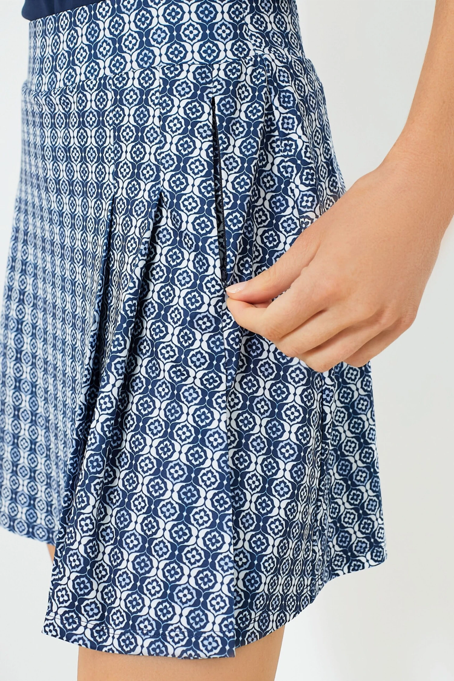 A fashionable style for days spent on the greens, the Lisbon Tile 16 Inch Park Golf Skirt is a classy style that has all of the features needed to be successful on the course. With built-in shorts with comfortable (and effective) gripper tape, side pockets for your phone, and a golf tee holder, this style is not only chic, but also functional.Â