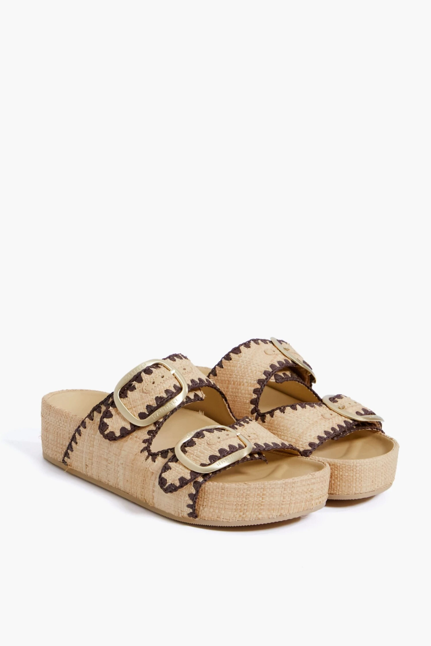 Sporty and always on-trend, the Natural and Dark Brown Straw Theo Two Band Sandal is a classic. Designed with a padded leather footbed for ultimate comfort and two adjustable buckle straps that are detailed with raffia trim for elevated contrast, these shoes highlight style and function. Opt for shorts and a blouse for casual summer days or pair with a printed maxi for mid-week happy hour.Â