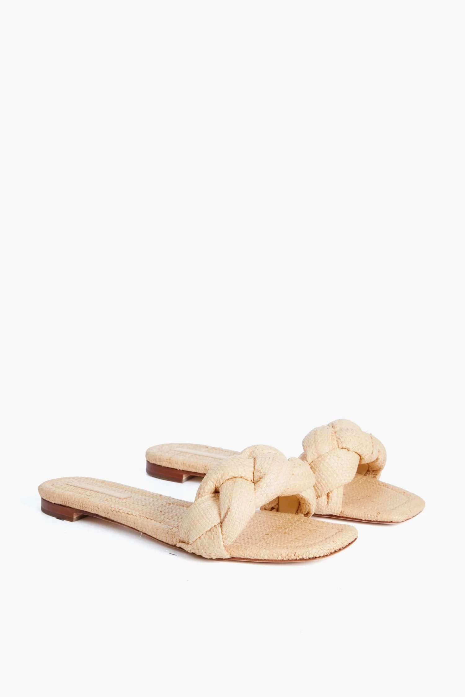 - Material: 100% Natural Raffia (upper), 100% Bovine Leather (outsole)