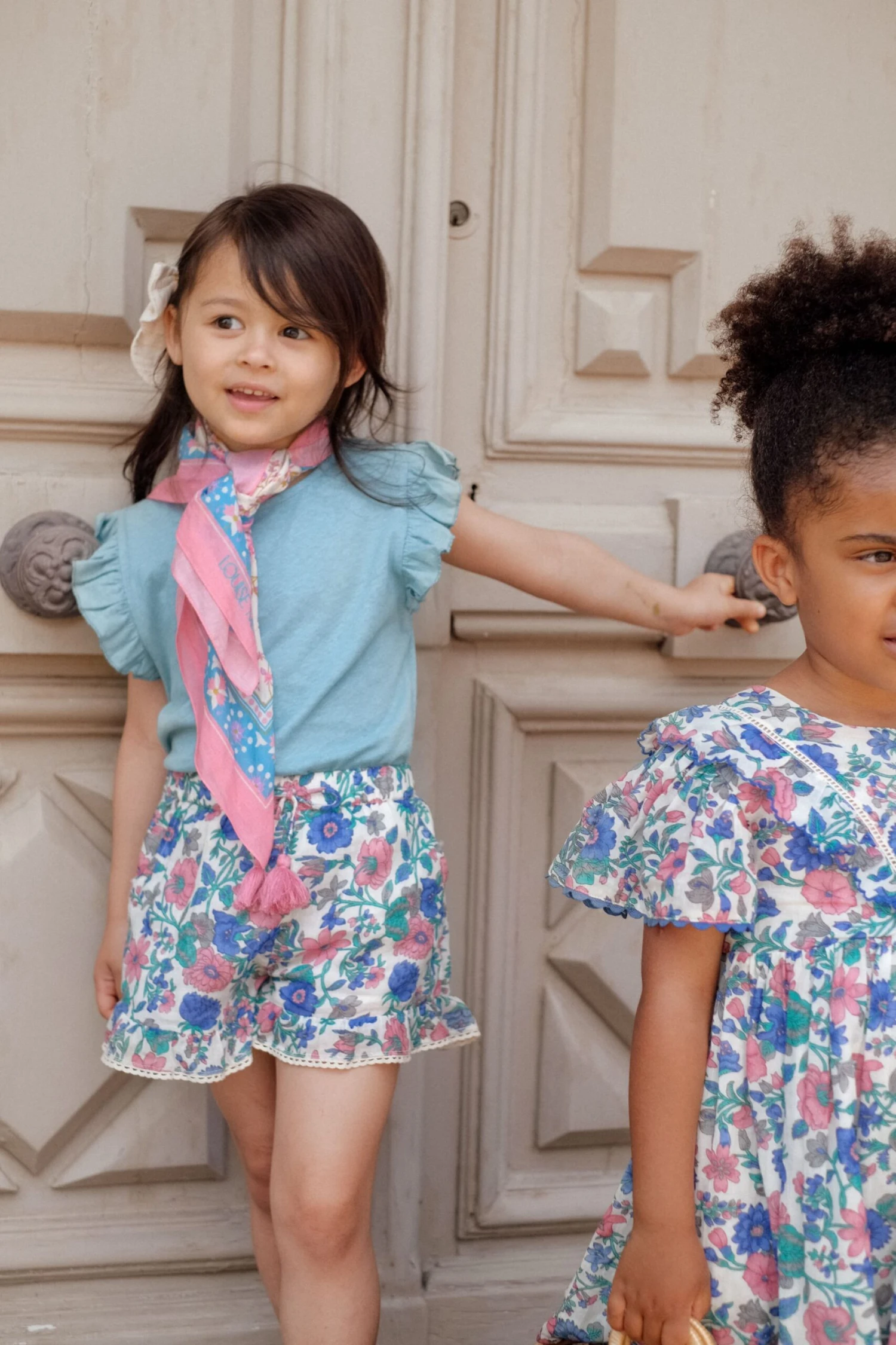 With the Blue Summer Meadow Vallaloid Shorts, your little one won’t have any trouble finding some fun in the sun. Designed with a nicely ruffled hem and finished with lace trims and handmade tassels, this cute-as-can-be style will let your kiddo’s legs freely skip across the fields. Pair it with a tee for a cute ‘fit for your little fashionista.