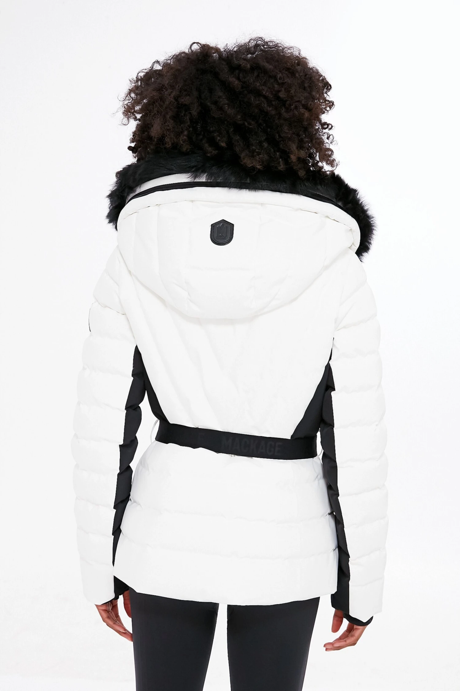 The Elita Down Ski Jacket is our favorite look for a day on the mountain gliding through fresh powder. With unique chevron quilting, storm cuffs with thumb holes, underarm vents so you don’t get too warm on sunny days, and a removable powder skirt to keep snow out, this 800 fill-power duck down coat will ensure you will stay dry and warm. Add some racing pants and goggles for black diamond runs, or pair with leggings and a beanie for an apres ski drink at the lodge.