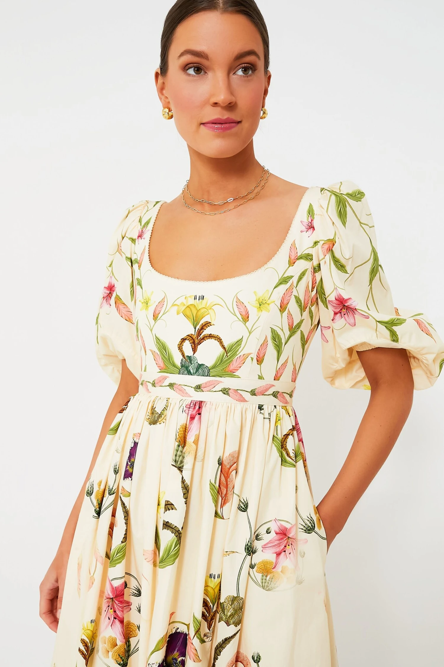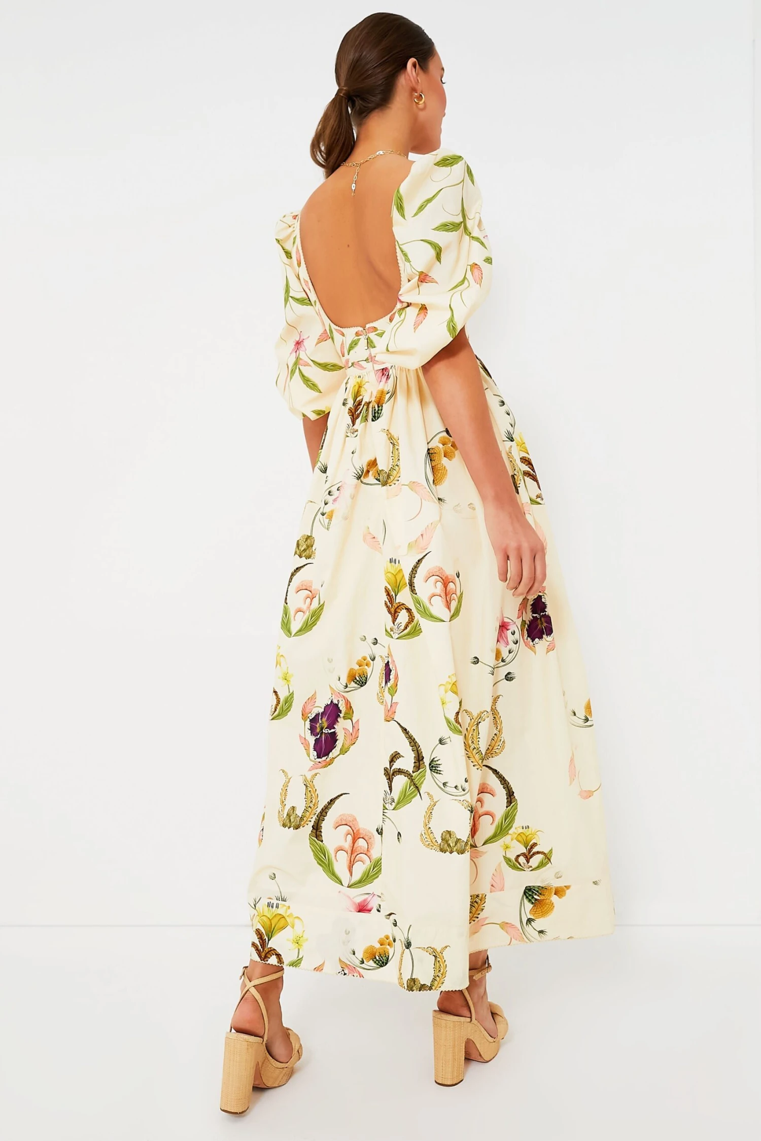 Featuring ultra-feminine balloon sleeves, a lovely floral print, and unique hand-embroidered details, the Marina Vivianne Maxi Dress is perfect for midday gatherings and moonlit soirees. Pair with heels and gold jewelry for a dramatic renaissance-inspired look.