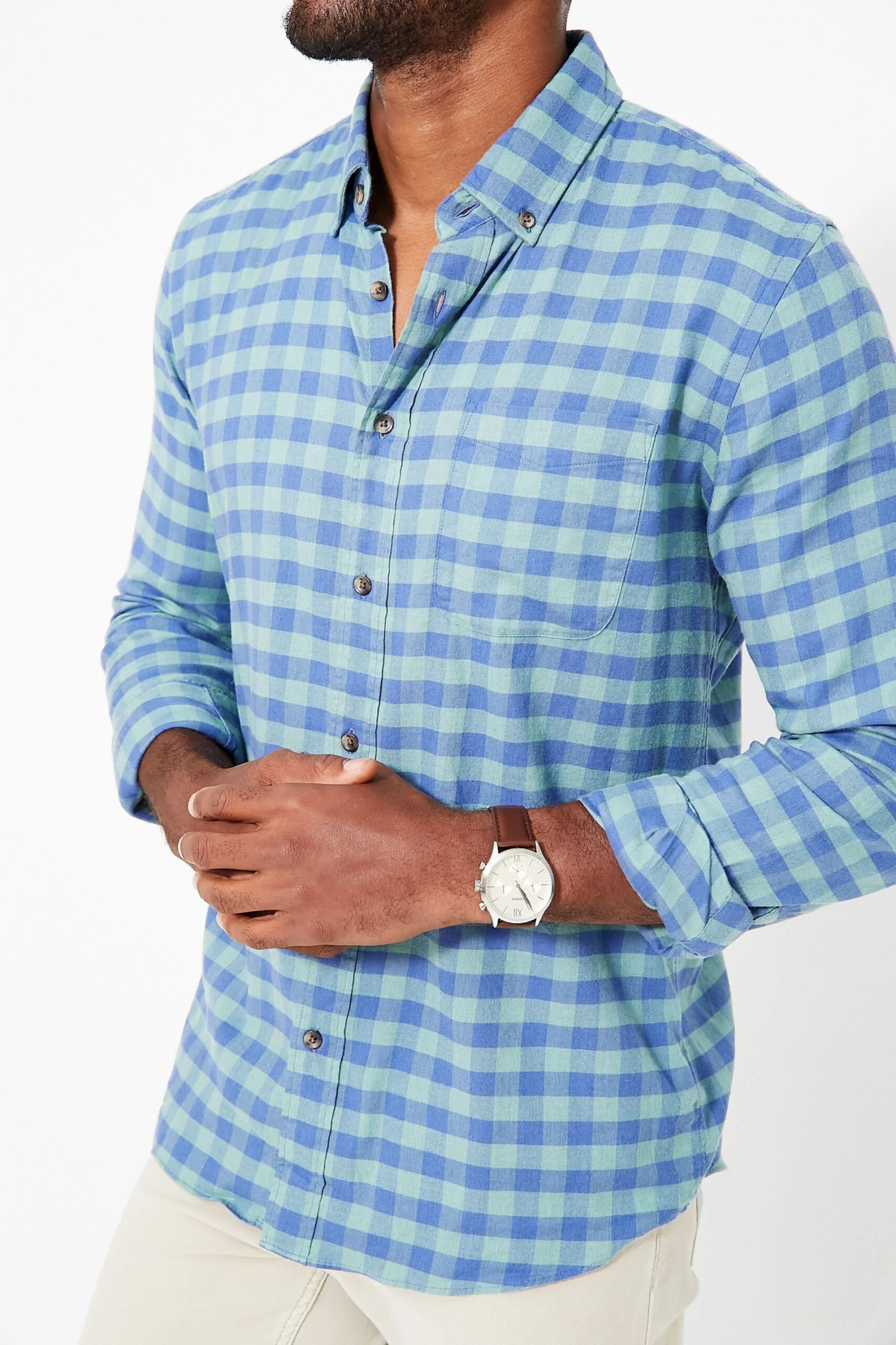 The Moss Cove Gingham All Time Shirt was designed to be the ultimate do-everything top with a special blend of luxurious fibers crafted for year-round wear. Like a flannel but more airy and stretchy, this piece features a spread collar, front button placket, and shirttail hem. Casual enough for the bar yet polished enough for the office, we are styling this easy silhouette with khaki pants and loafers for a classic look.