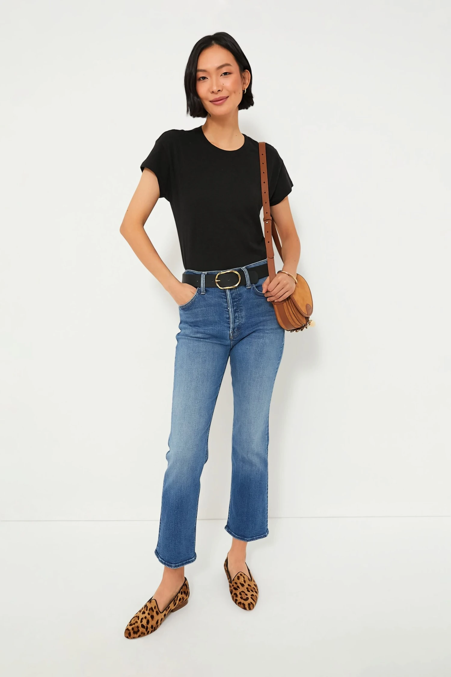 Groovy and classic at the same time, these Work Hard Play Hard Tripper Ankle jeans by MOTHER are a new year-round favorite. The blue wash and flare silhouette creates a 70s-inspired appearance, and the high rise waist and clean ankle-length hem make these a closet staple. Pair with a bell sleeve blouse and sandals for a full Woodstock vibe, or with a white tee and black blazer for an effortlessly-cool look.Â