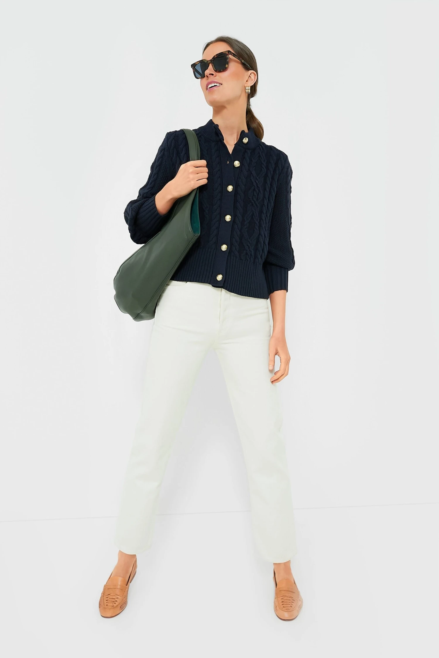 Chunky, cozy and always chic- the Navy Colette Cardigan takes the very best elements from the classic style and updates it with exaggerated bishop sleeves, gold buttons, and a slightly cropped but not too short length that makes it perfect for layering over dresses or styling solo with high waisted pants. Dressed up or down, in the office or out to dinner, the possibilities are endless with this transitional piece.