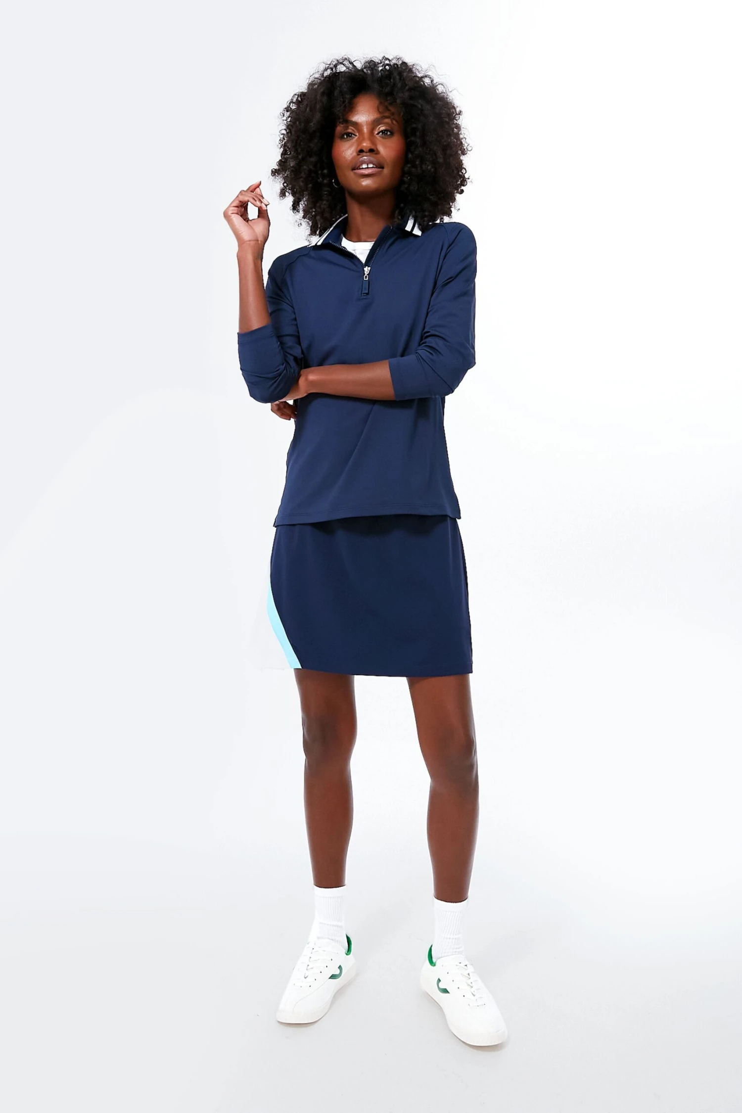 Who doesn’t need a light layer to throw on when the wind picks up? The Navy Key West Polo is suited for just that, in a breathable athletic fabric composition with a hint of stretch. A spread collar with contrasting stripes and a notched hem makes this number fashionable in addition to the obvious functionality. Throw on with a tennis skirt or leggings for golf, pickleball, a run or walk, or just chilling out at home.