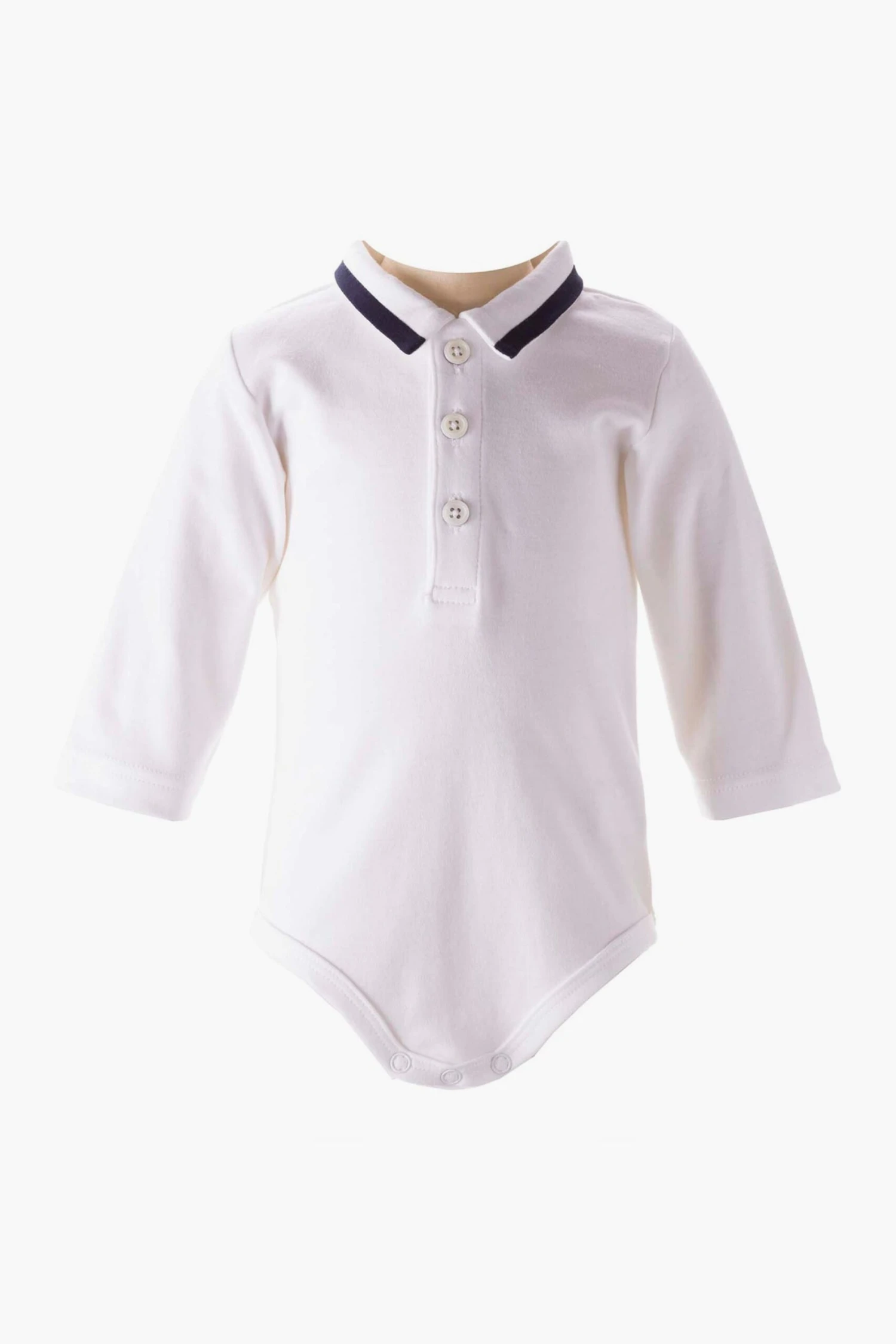 A functional layering piece is the perfect addition to your little one’s wardrobe. Featuring a jersey body with a ribbon trim collar, this bodysuit has a button front opening, and snaps at the inner legs makes changing a breeze. Pair with trousers to complete the look!Â