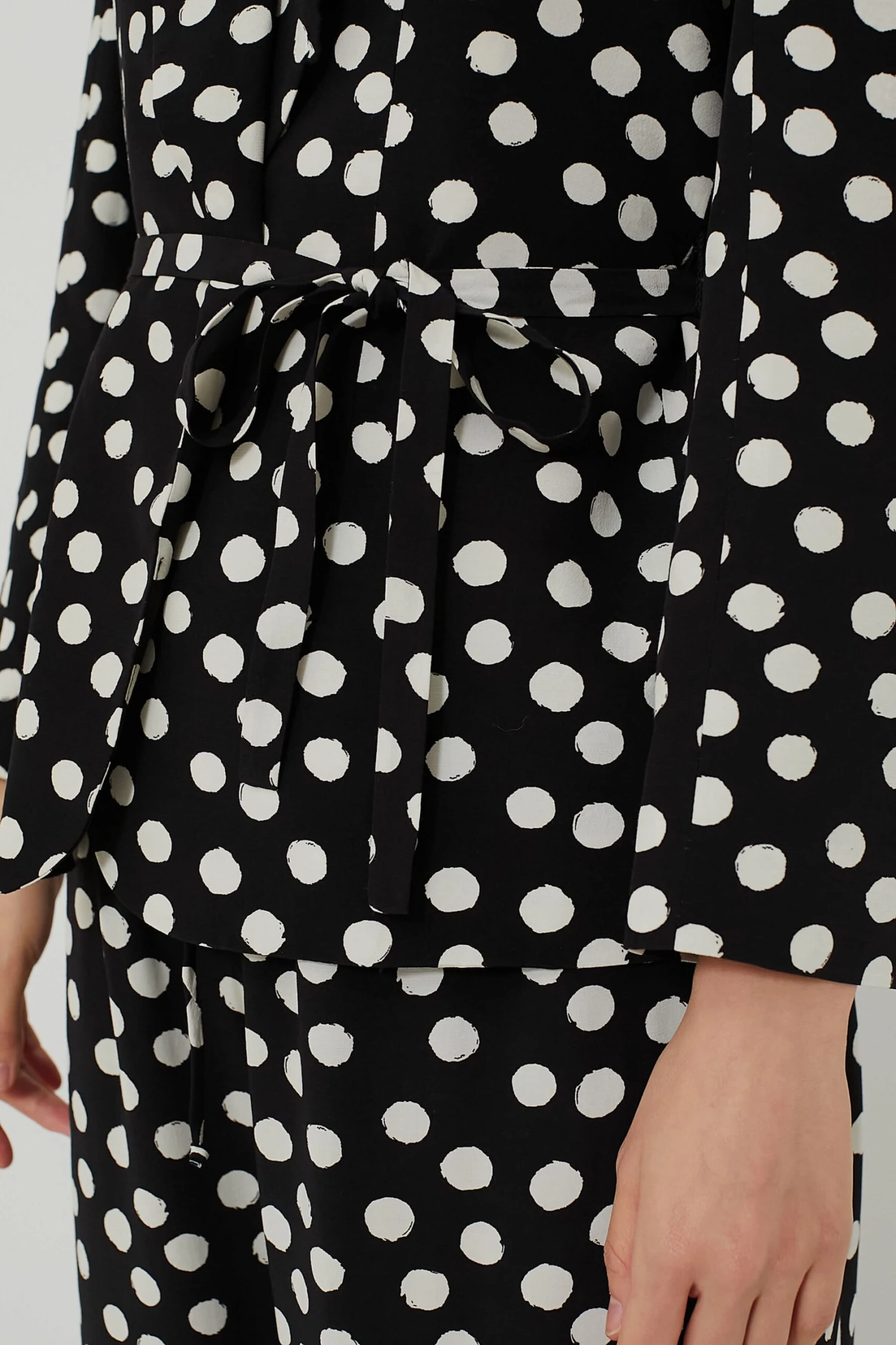 Power dressing but make it fun! The Painterly Dots Black Paris Jacket boasts a shawl collar, removable waist sash and puff shoulder making them the perfect style for work and play. We love styling it with the matching Black Sharon Pants for a polished coordinating look, or pair it with denim and your best heels for a chic date night ensemble.