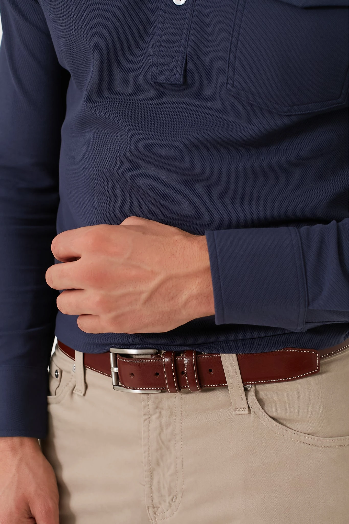 The Peacoat Long Sleeve Players Shirt is the ultimate layer for year-round wear. Made from premium Pima cotton, it pairs well with shorts and sunglasses for a day on the course or at the brewery.