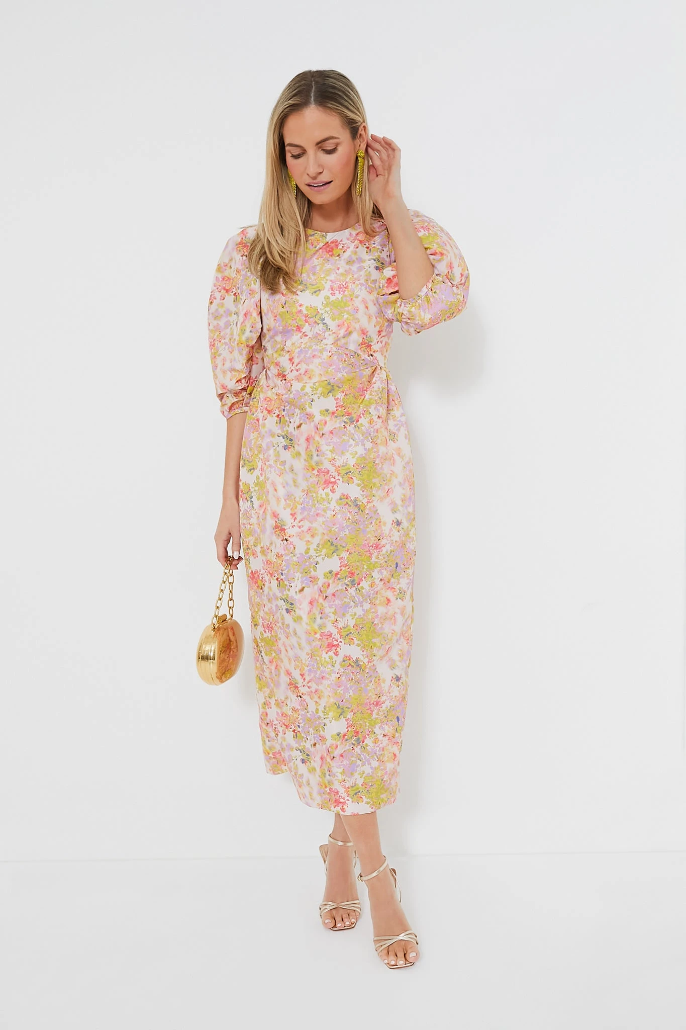 Fit for a Victorian garden, the Pink Garden Bessie Dress is nothing short of exquisite. This midi boasts half-length puff sleeves, a gathered waist detail, and a back slit for easy movement. The elegant floral pattern looks like you stepped straight out of a watercolor painting- just add heels and statement earrings and you are ready for luncheons, showers, weddings, and more!