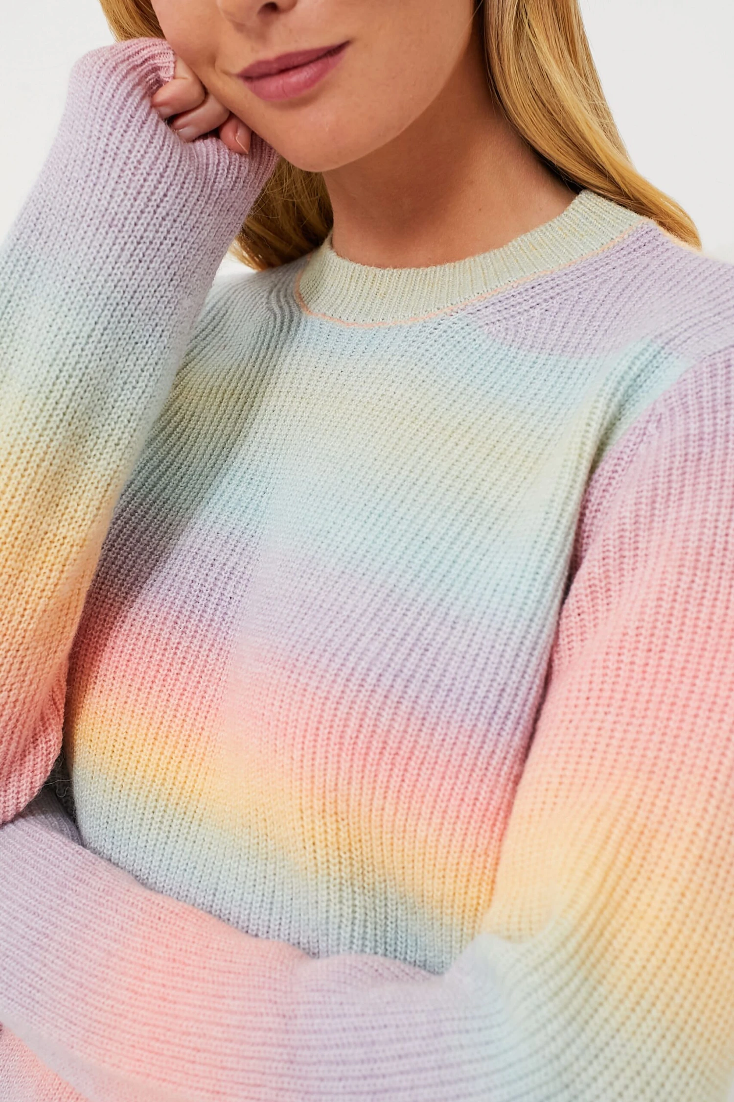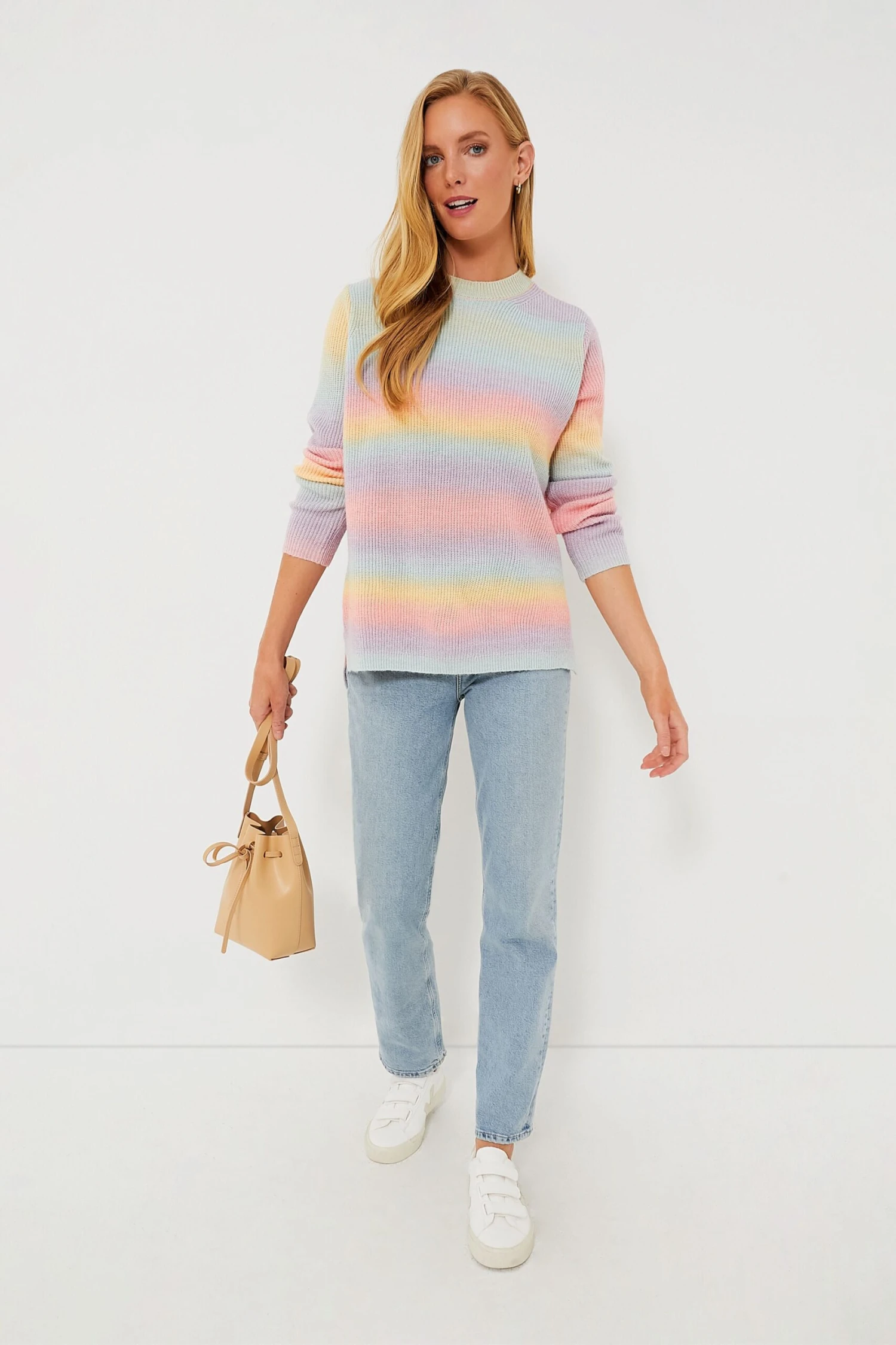 The Rainbow Candy Crewneck Sweater is a sweet addition to any look. Pair with white denim and sneakers for school drop-off and errands or opt for flats and trousers for a pop of color as you head to the office. You can’t help but smile when donning this versatile, playful style!Â