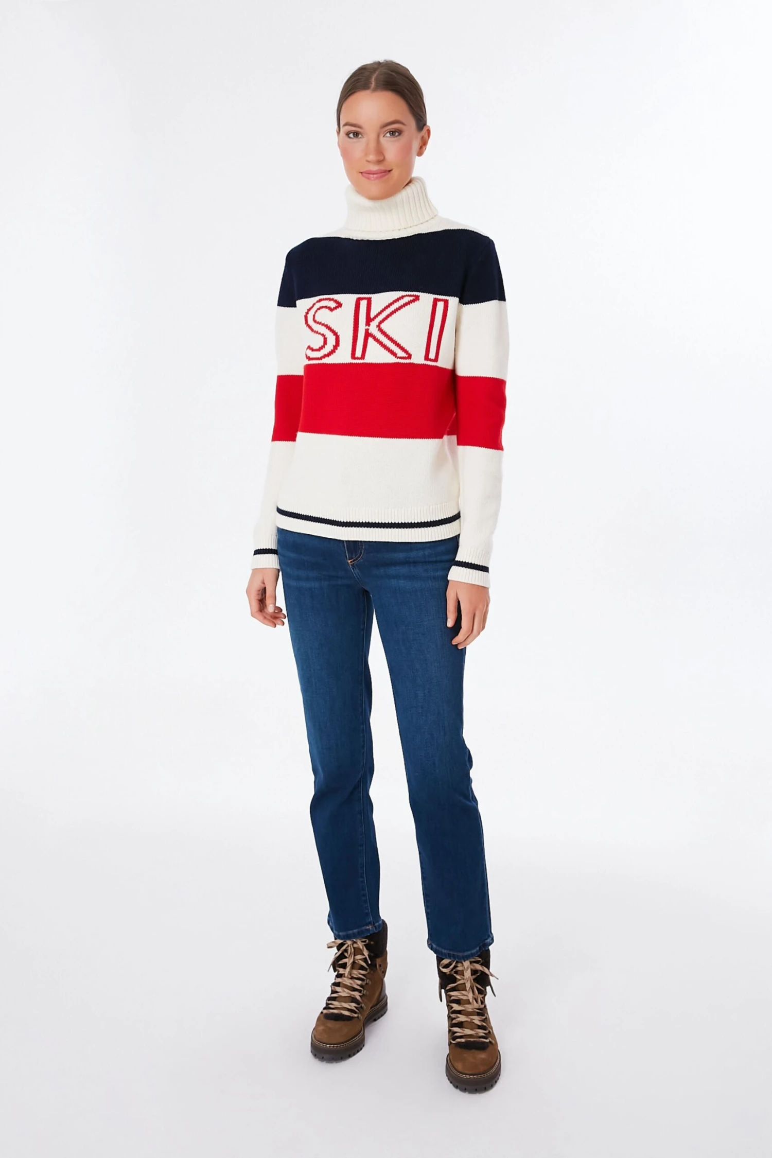Whether you’re hitting the slopes or heading to the city, take the Frostine Sweater along for the ride and do it in classic striped style. Cut from responsibly made Merino wool, this relaxed-fit, turtleneck jumper is super-soft on the skin and as cozy as can be. The signature SKI lettering means you can wear your love for the snowy mountains on your rib-knit cuff sleeve. Designed to hit at the hip, Frostine knows how to flatter your figure–sweater weather never looked so chic.