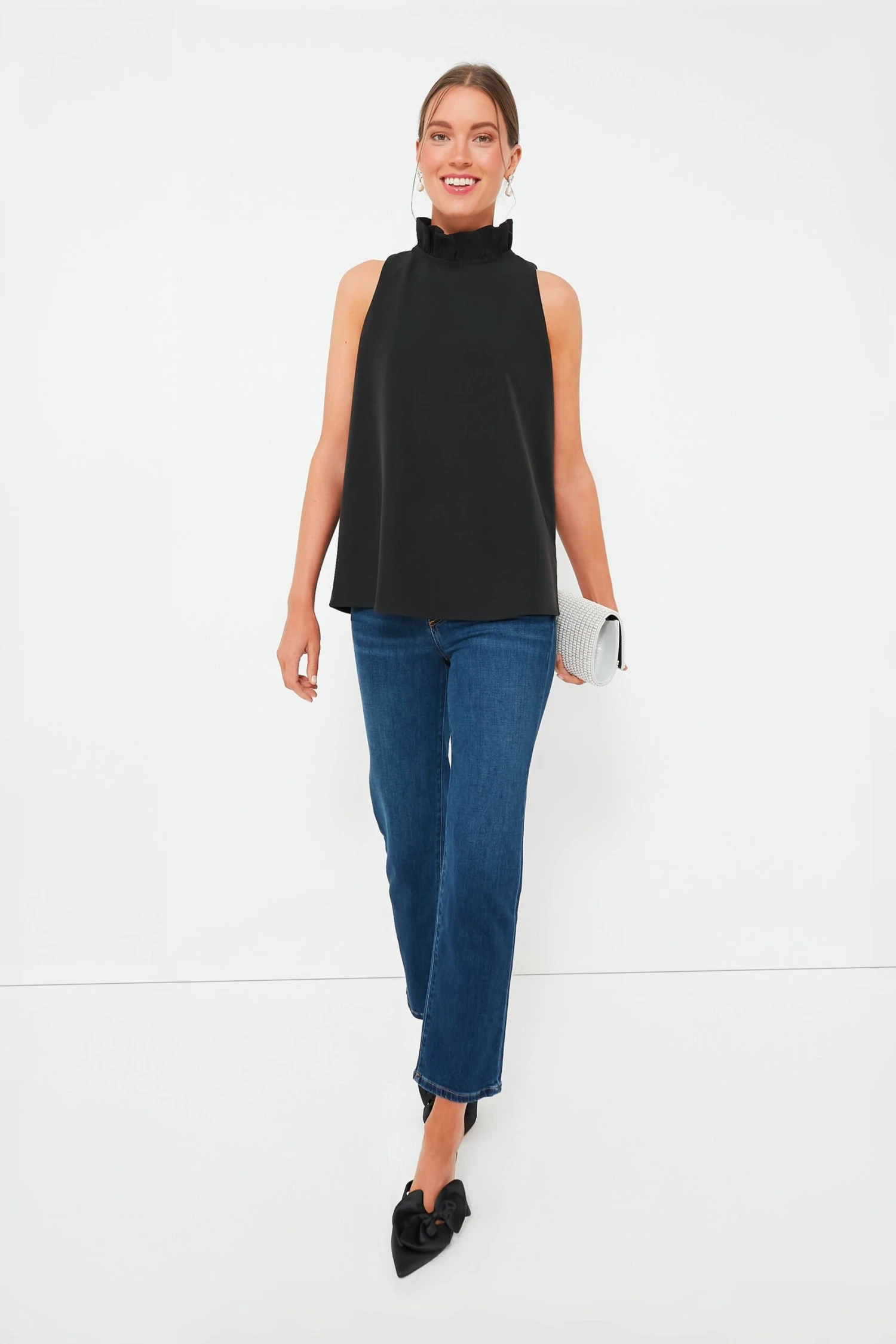We are channeling Carrie Bradshaw in the Veranda Heels! Complete with a sleek pointed toe and sweet satin bow, we love these black beauties for adding a classy and subtly sassy touch to any ensemble. Perfect for cocktail hour, style these shoes with your favorite dress, handbag, and glitzy accessories for a smashing look.Â