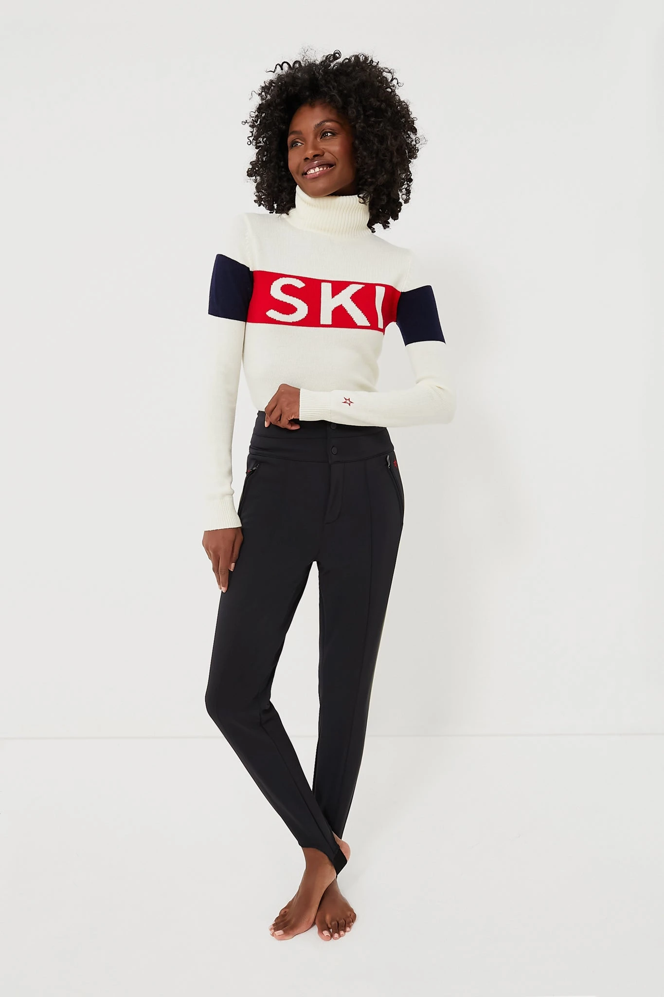 - “Ski” intarsia-knit at the center front