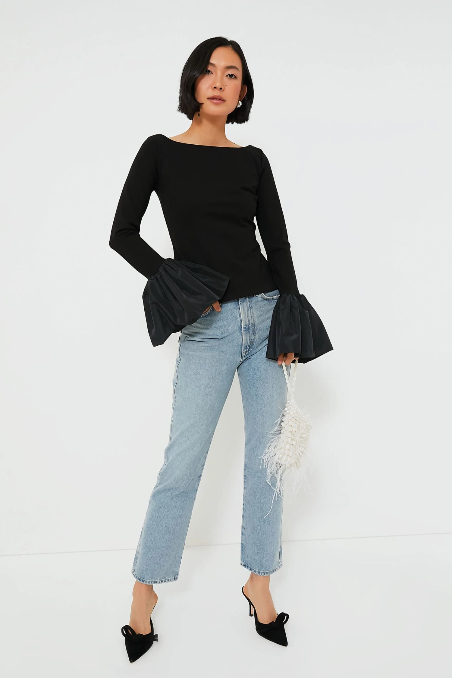 Elevate your style effortlessly with this statement piece – the Black Paige Top, perfect for making a lasting impression. It showcases a bateau neckline with exaggerated bell cuffs that adds a playful, eye-catching detail. We’re wearing this flirty top to everything from date nights, cocktail parties and girls night out. Pair it with black pants and sleek heels for a chic monochromatic look – just add a sparkly clutch and you’re ready for wherever the night takes you.Â