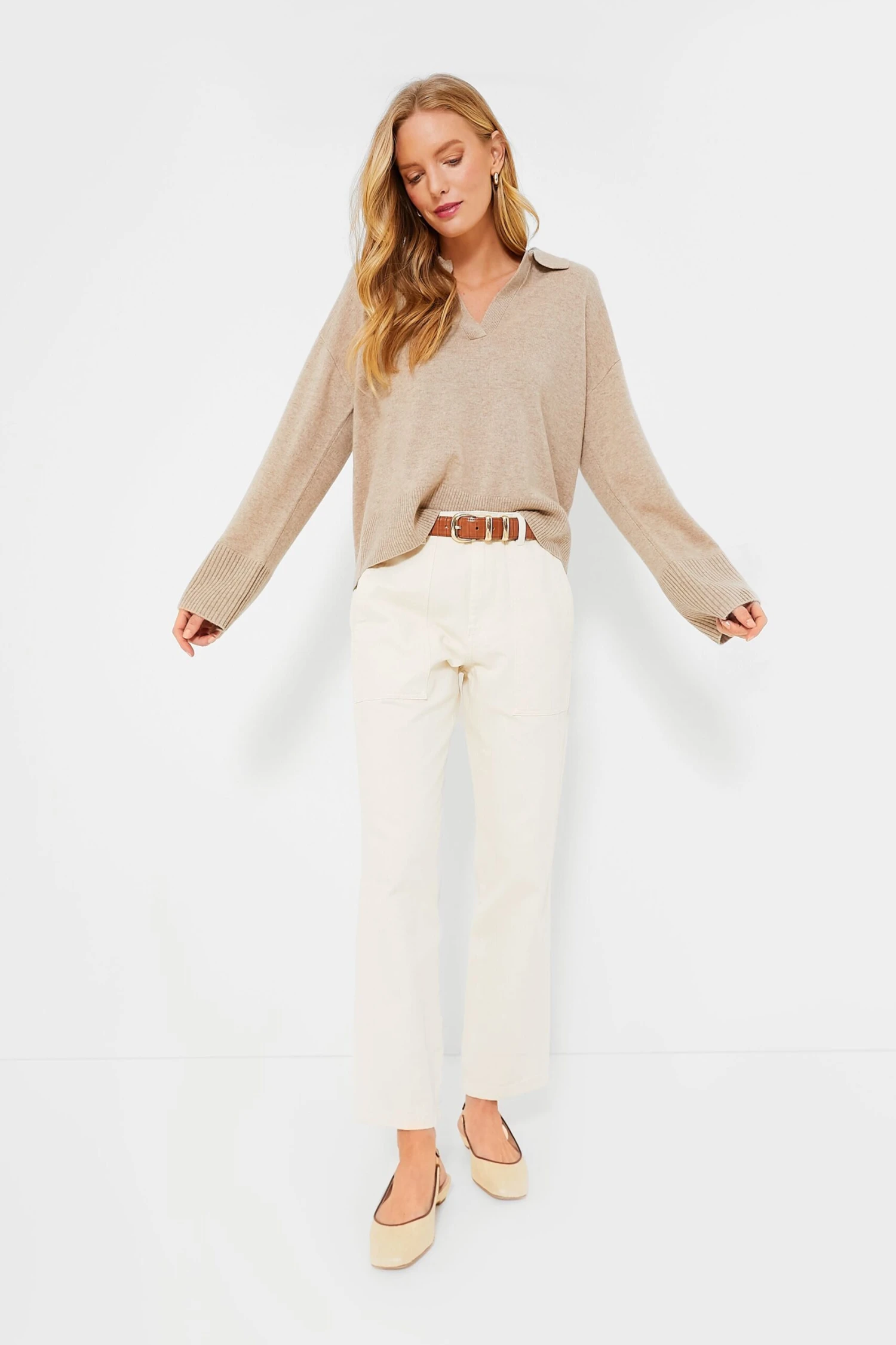 Beautifully crafted from buttery soft cashmere, the Stone Ally Polo Pullover is made for ultimate warmth and comfort. An essential for your wardrobe, this clean yet comfortable sweater features on-trend notched collar neckline, drop shoulders, ribbed cuffs, and a relaxed fit. We are styling this silhouette with denim, trousers, skirts — it’s perfect for slow weekend getaways, chilly afternoon strolls, lunch dates, and more.Â