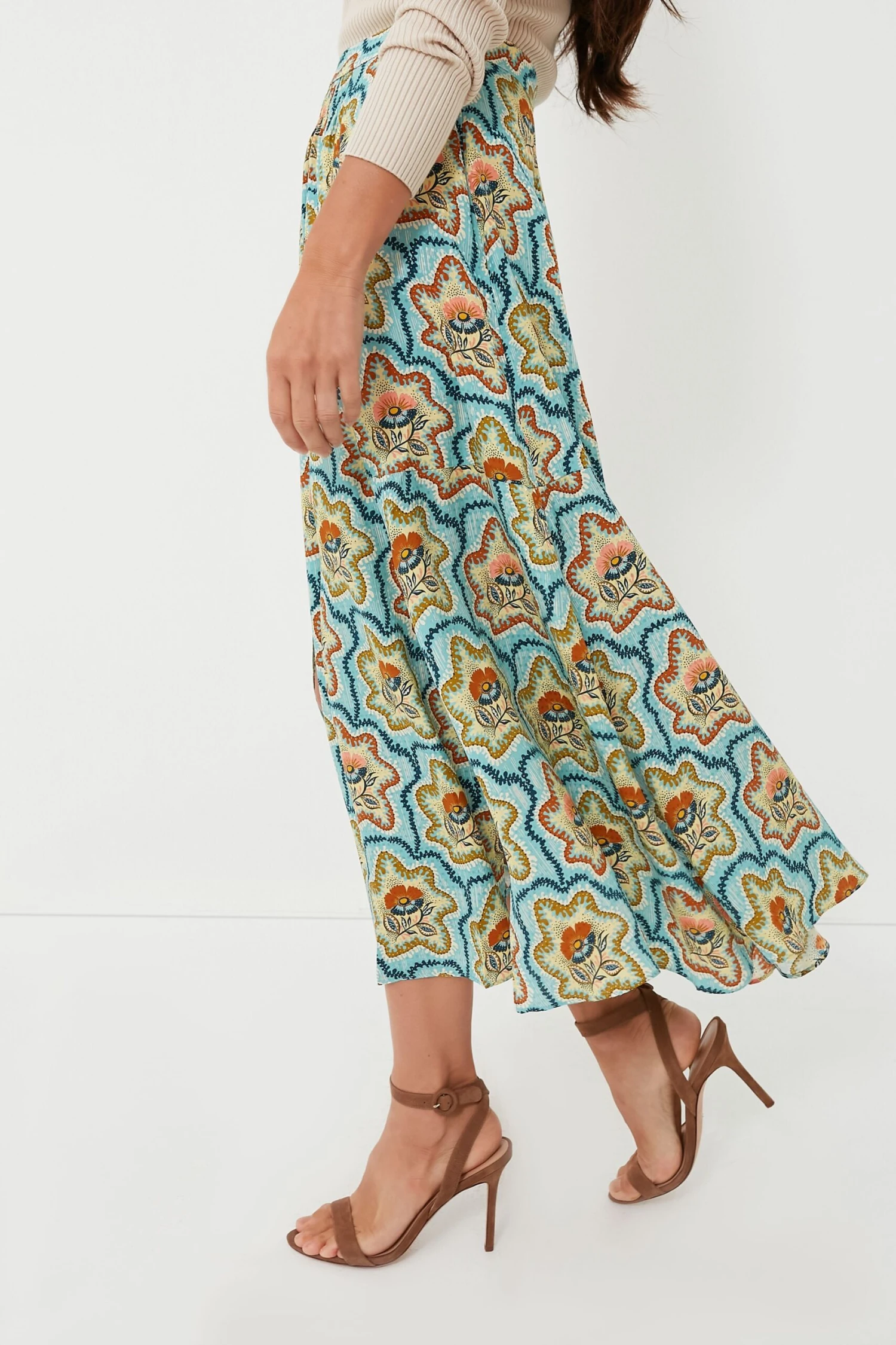Universally chic, the Tea Time Flower Tucker Skirt is just the style your closet needs. Made from luxe silk, this beauty features a covered waistband, smocking details, and a hidden back zip — though our favorite detail has to be those double slits that allow for breeziness and easy movement. Effortlessly style this transitional piece with a turtleneck or a button down and flats for a classic ensemble, or pair with the matching Graham Top and heels for a stunning statement!Â
