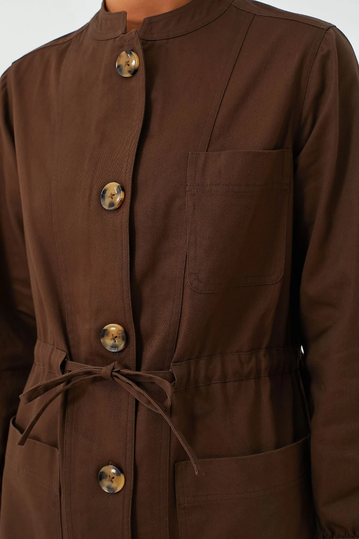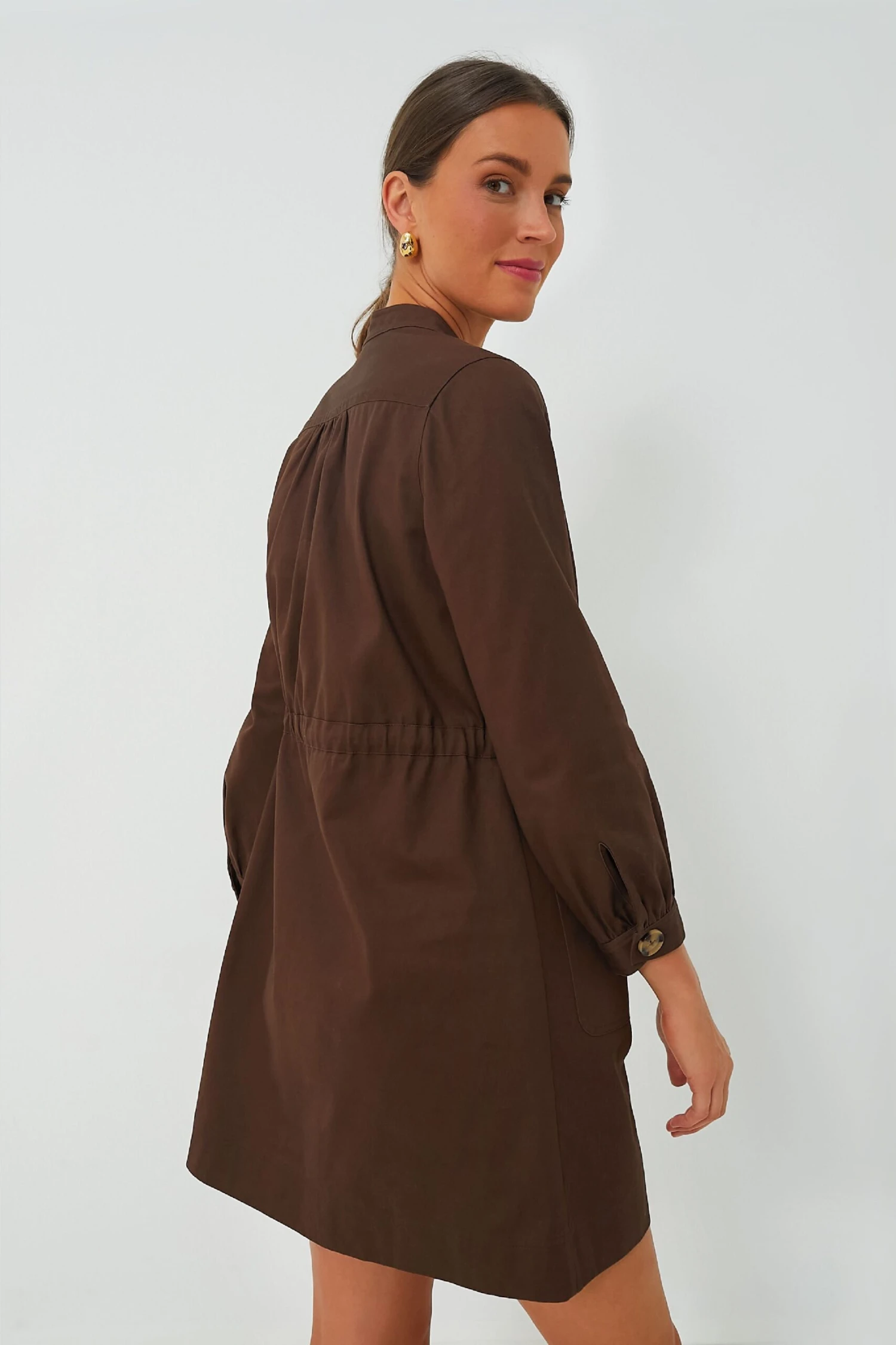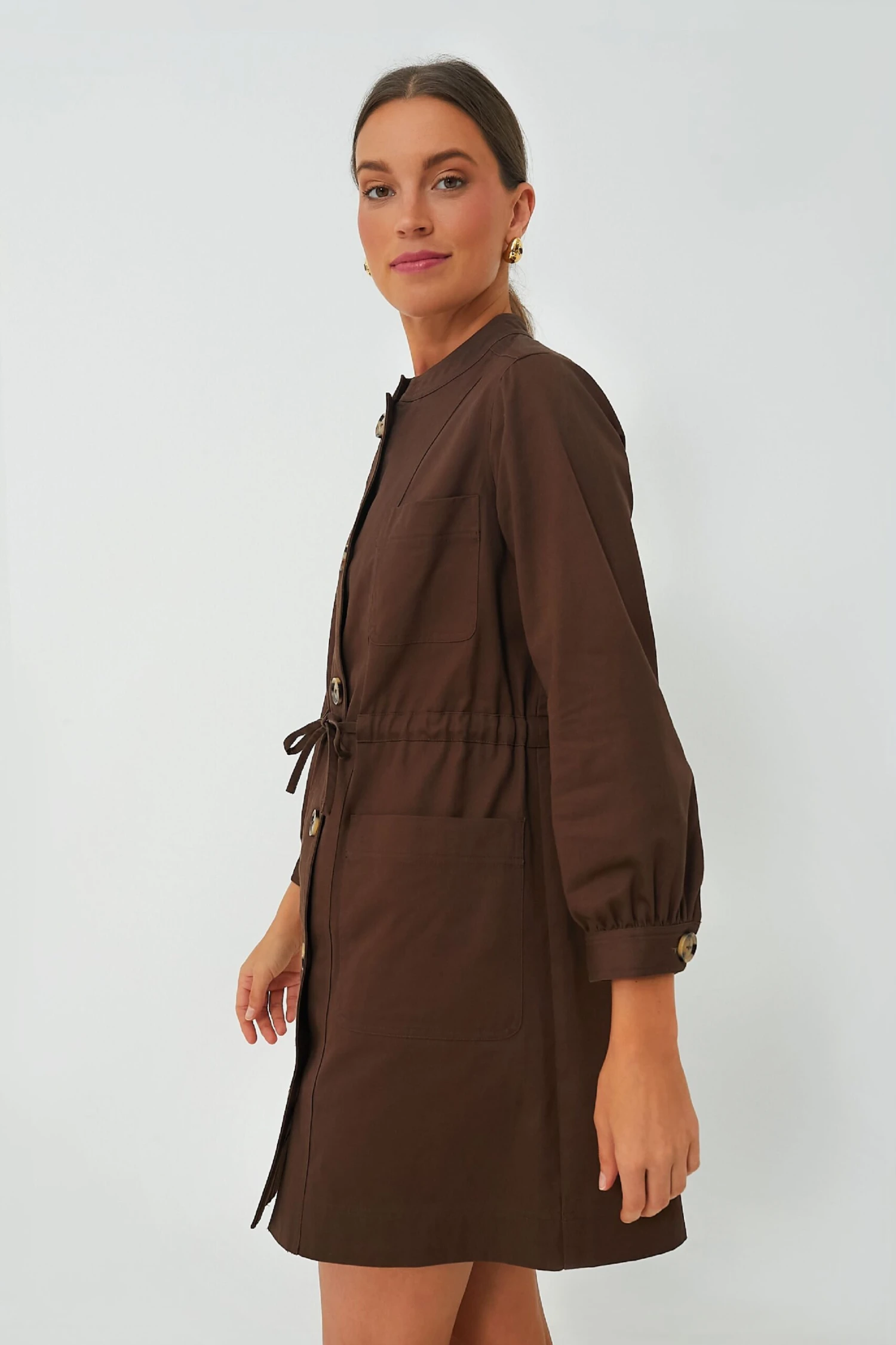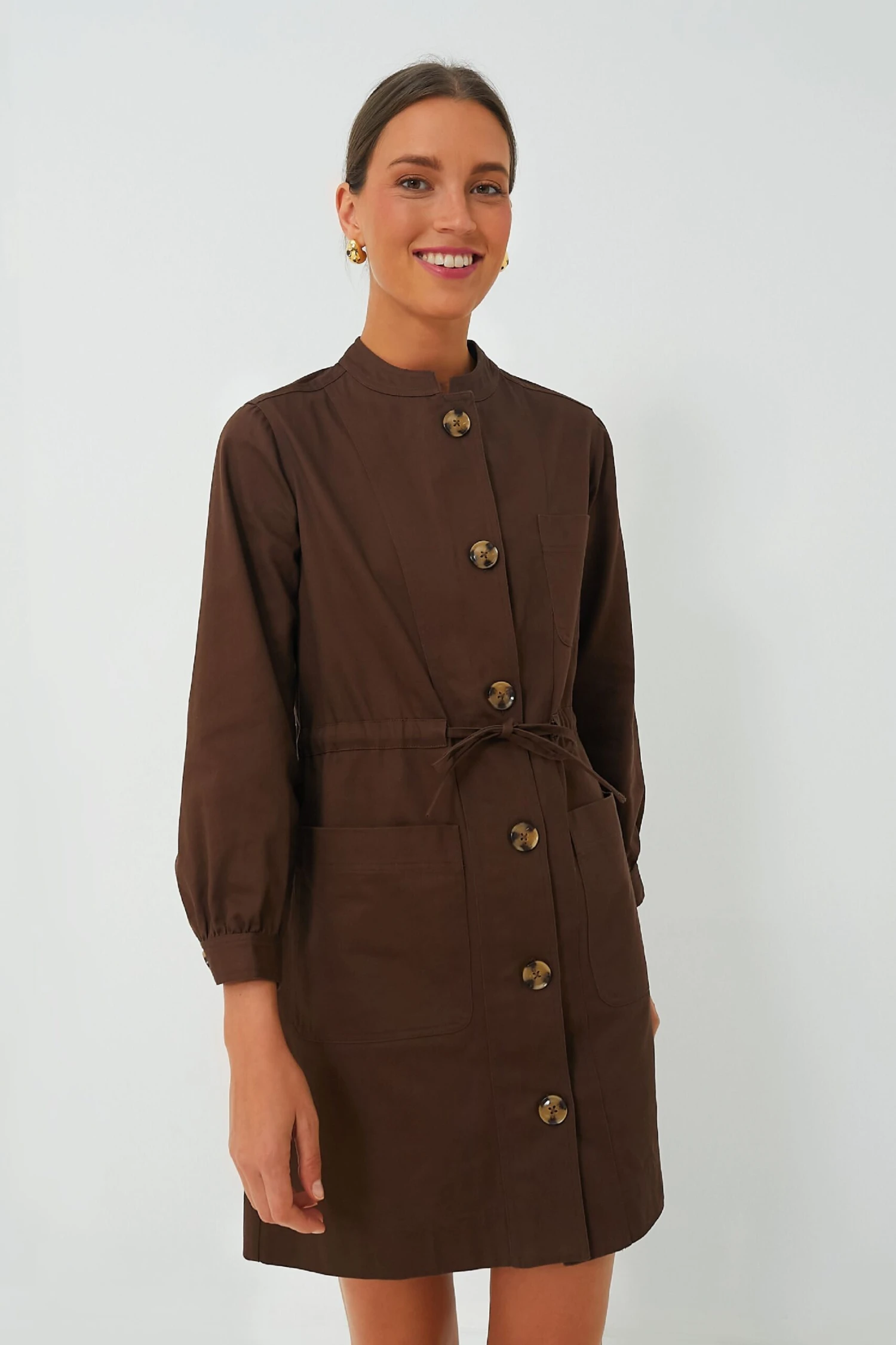 Searching for the perfect dress up or down mini? The Truffle Crosby Dress has you covered. In an on-trend mocha color, this fun style boasts tortoise shell buttons on the front placket and cuffs, chest and hip pockets, and a thin waist tie to customize your fit. For a Parisian-chic look add flats and a crossbody or for a more casual-cool feel add fresh white sneakers and sunnies.
