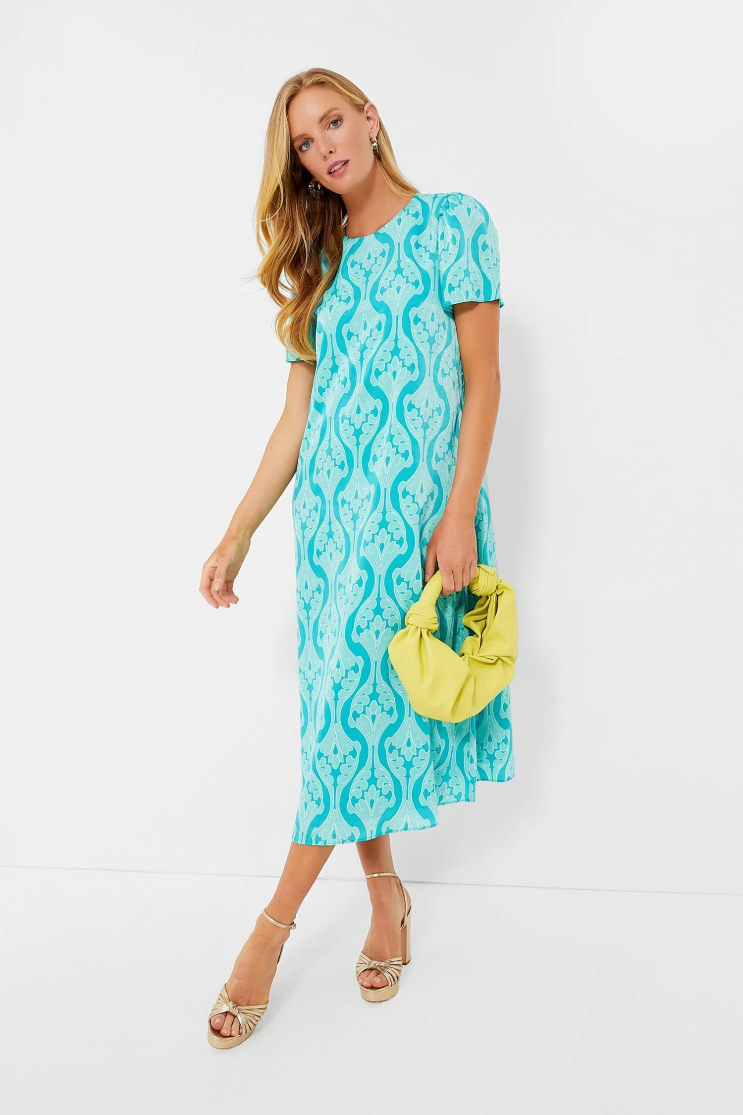 Add some brightness to your wardrobe with the Farah Dress! Featuring an eye-catching turquoise print in a silky fabric, this maxi is the easy choice for your next event. Pair with gold heels and a bright clutch for a colorfully chic ensemble sure to turn heads.Â