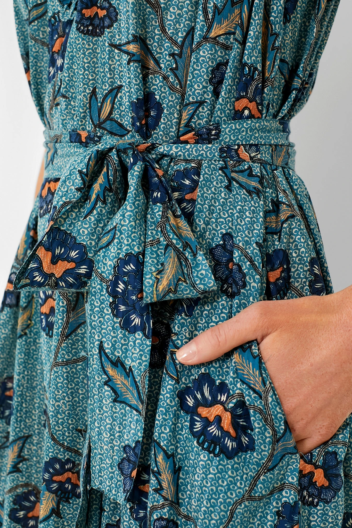 The Beverly Dress is made from Ulla Johnson’s shadow stripe cotton-viscose blend that’s patterned with whimsical botanicals displayed in shades of blue. Traced with subtle ruffles, this sleeveless dress floats down to a midi silhouette that you can temper with a belt and has an effortless handkerchief hem for a touch of drama. Style with espadrilles and a tote for a casual look, or dress it up with heels and gold earrings.Â