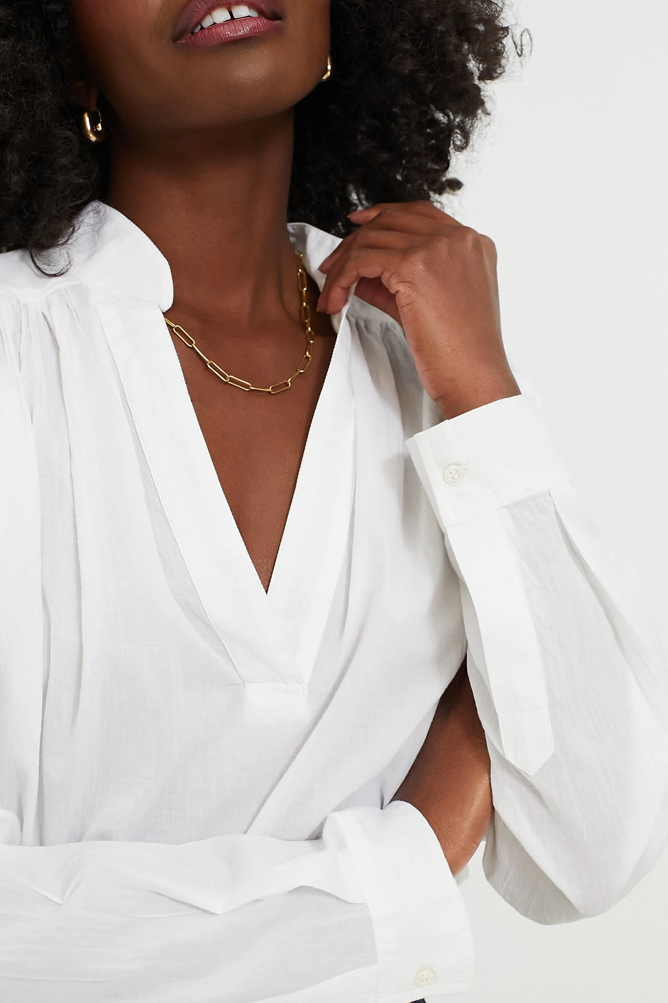 You can never have too many white tops and the Blanc Calvin Blouse is a styling winner. Boasting a clean, minimalist style, this season-less number is crafted from 100% silk fabric and it stands out for its relaxed silhouette, V-neckline and ruching details on the shoulders. Perfect for day to night wear, its versatility knows no bounds – wear it to the office with tailored trousers for a polished professional look, or pair it with jeans for a laid-back yet stylish vibe.Â