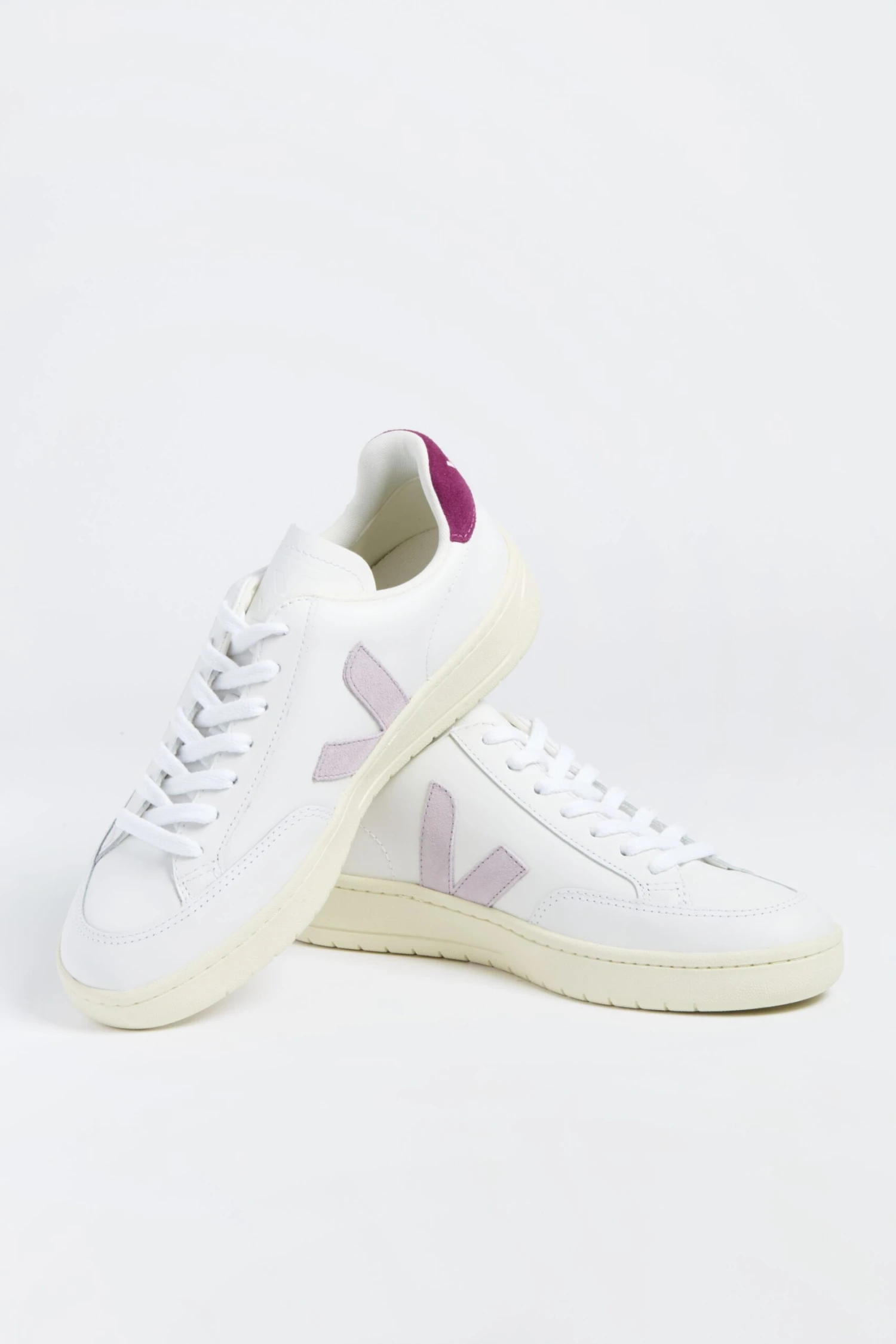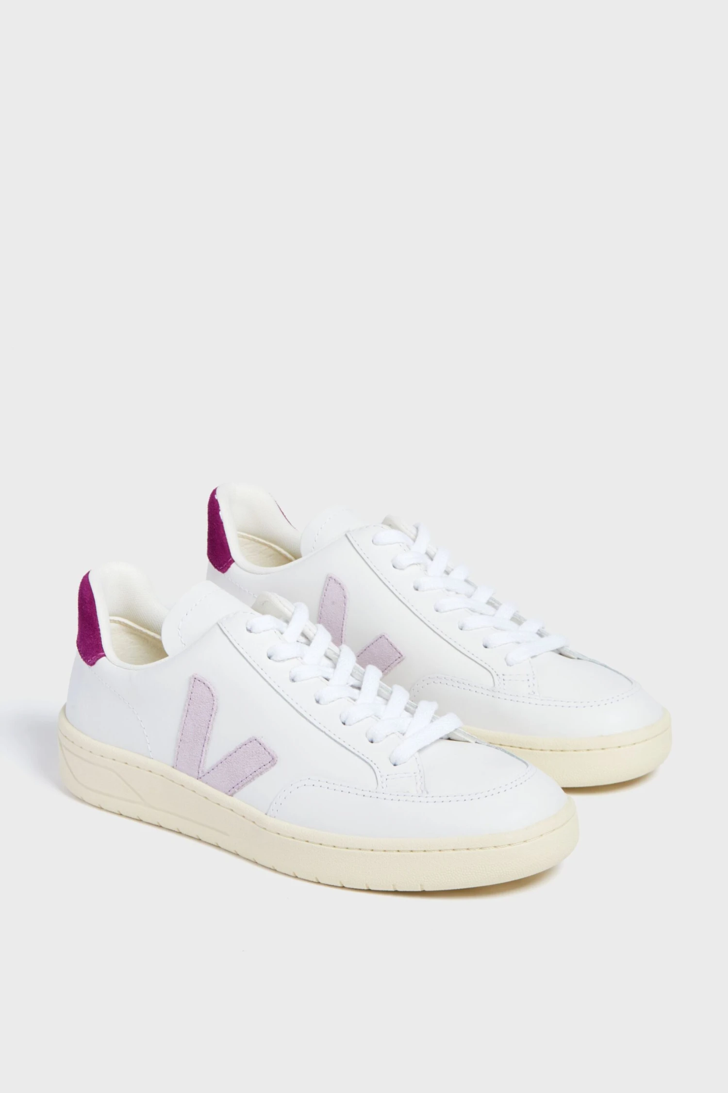 The Extra White Parme Magenta V-12 Sneakers feature a contrasting lavender logo patch and pink-purple heel, making them a fun twist on the classic white sneaker. This chic pair of shoes is ultra-comfortable with a padded collar and a thick flat sole, so you will reach for these to complete nearly any outfit. We love to wear them from a quick coffee run to a long day of errands, or while wandering around a new city — paired with everything from denim to joggers to day dresses.