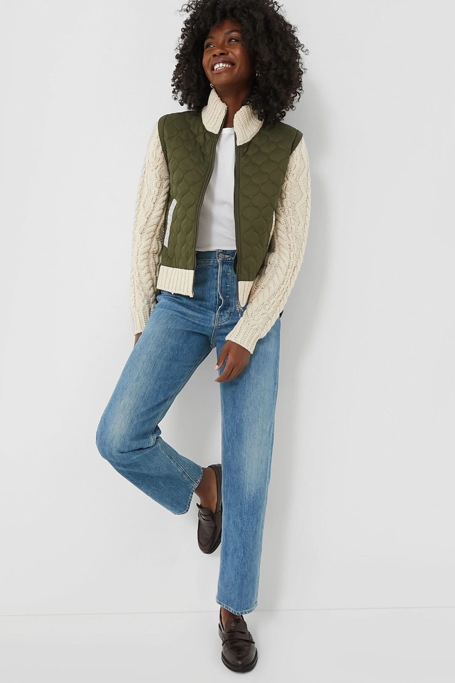 A chic new take on the bomber silhouette, the Army and Oatmeal Patra Jacket is effortlessly cool. Mixed media has never looked better than this style with its quilted bodice and cable knit arms — plus it’s got thoughtful details like a stand collar, angled hip pockets, and a longer back hem with a vent. Pair with denim and clogs for the ultimate fall look, or elevate it further with ponte leggings and over the knee boots for a sleek styling.